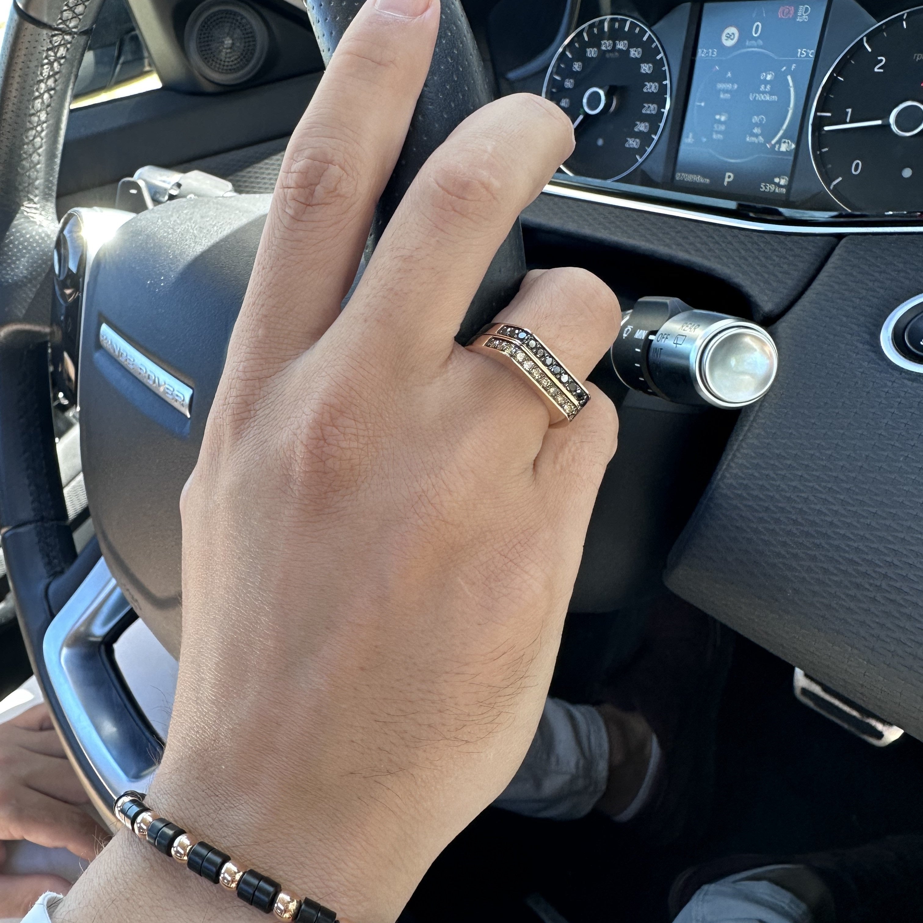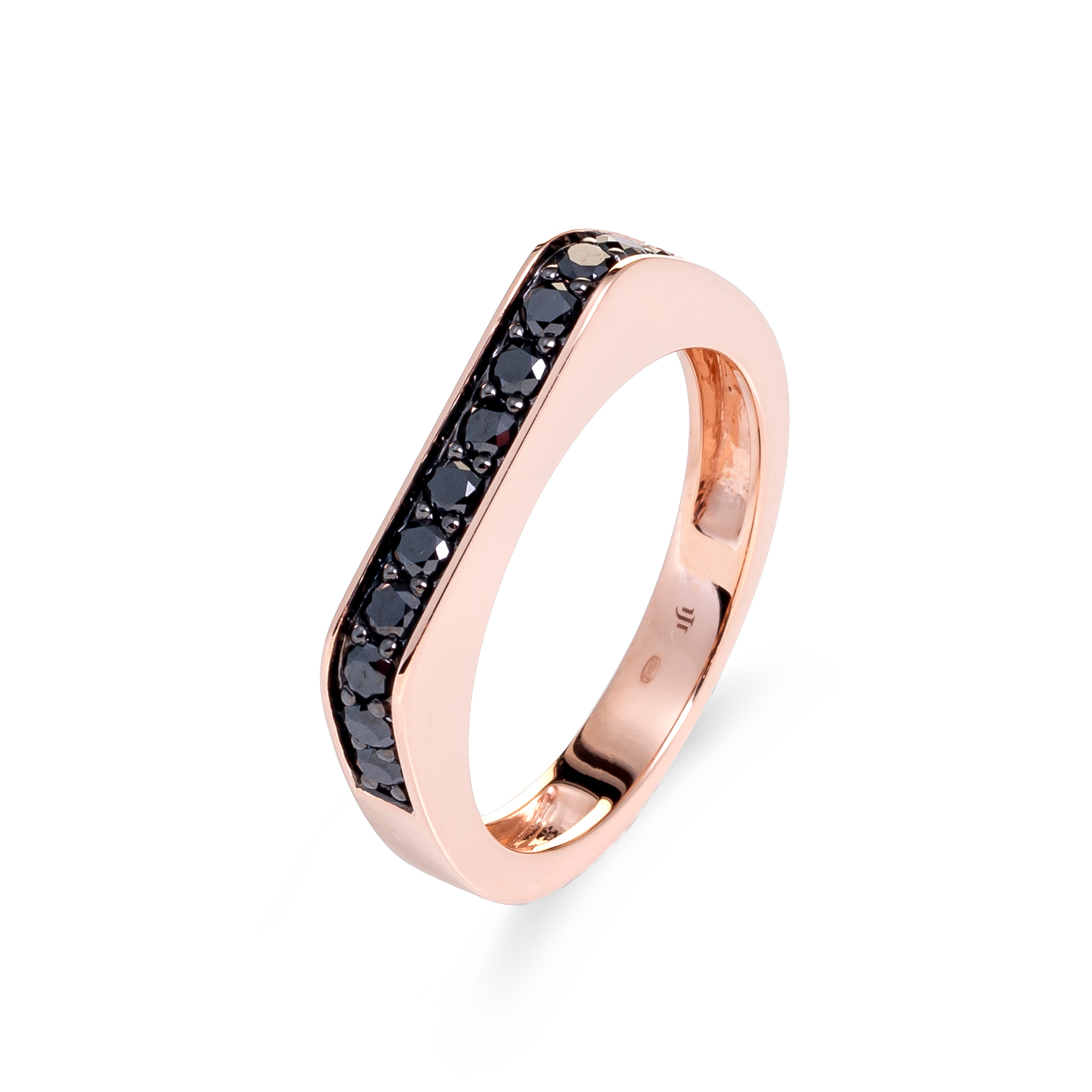 18K rose gold ring, black diamond 0.47 ct, 13 stones