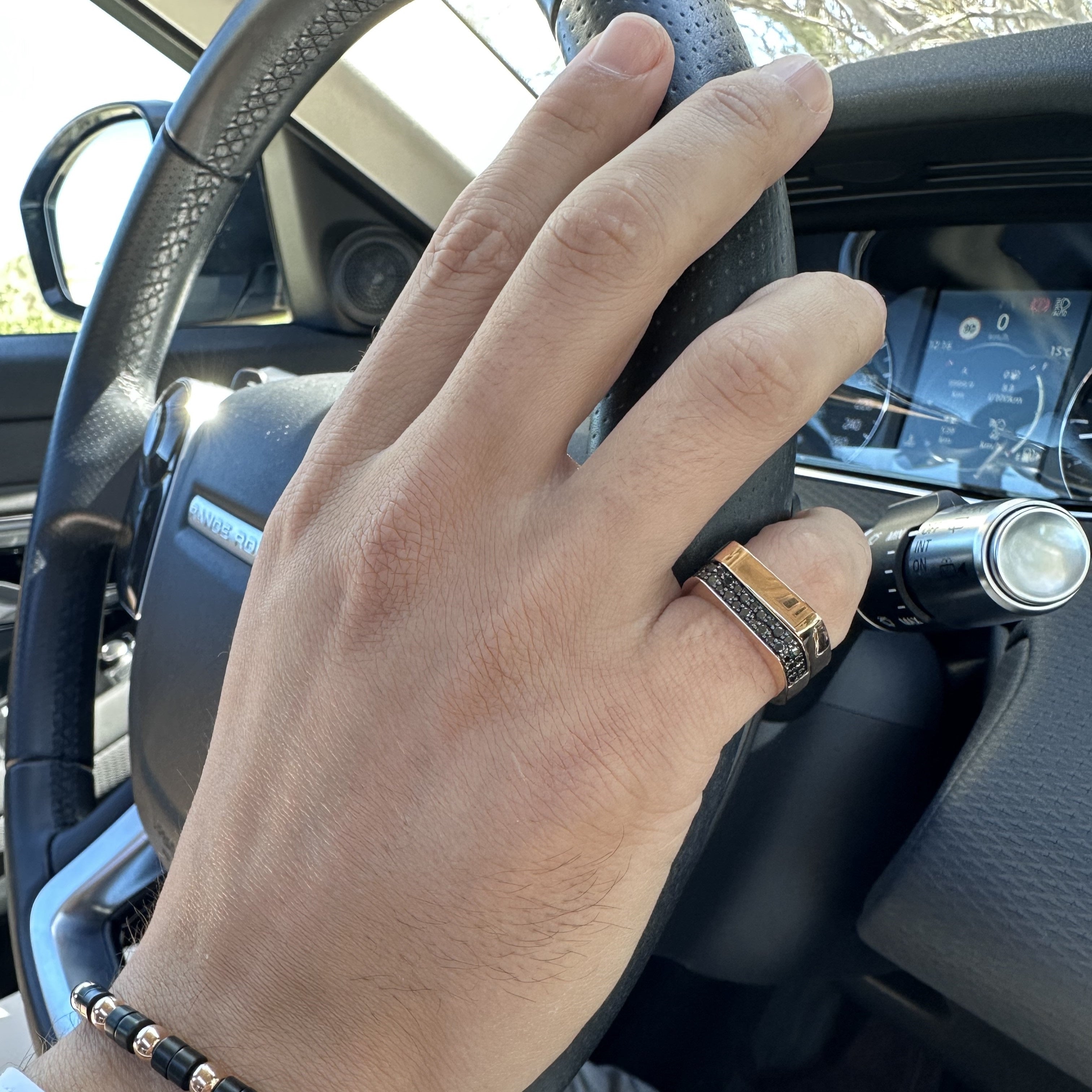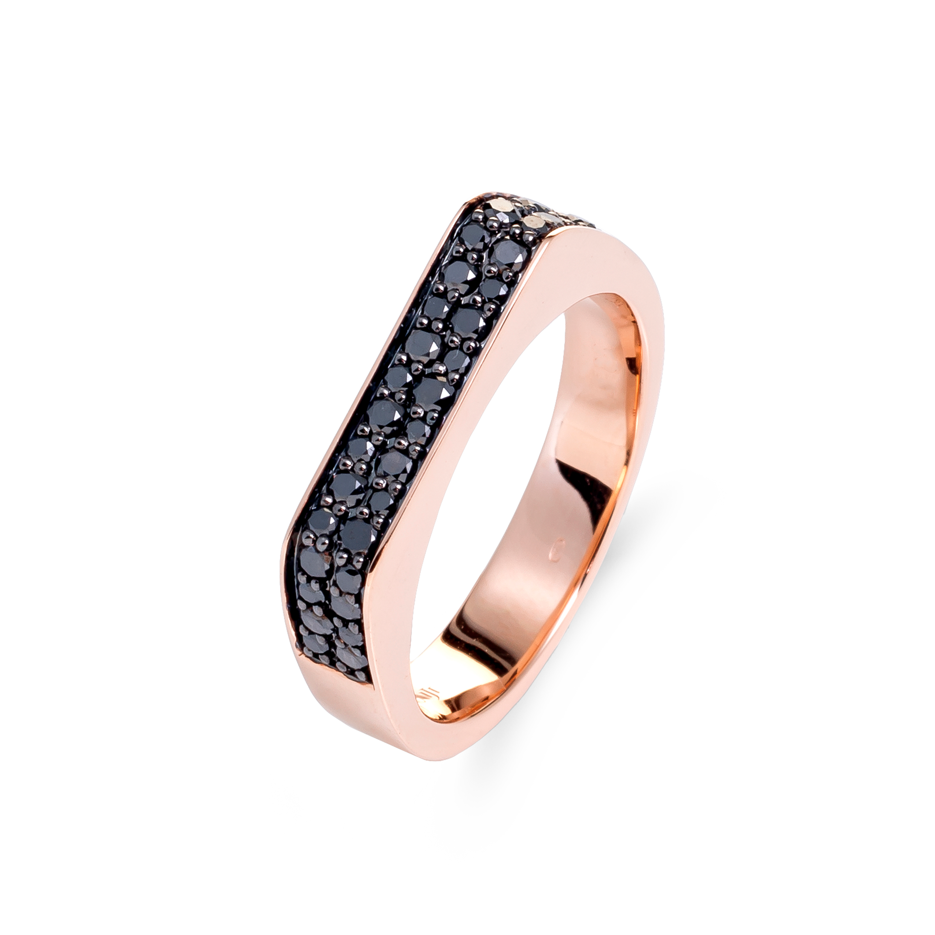 18K rose gold ring, black diamond 0.49 ct, 34 stones