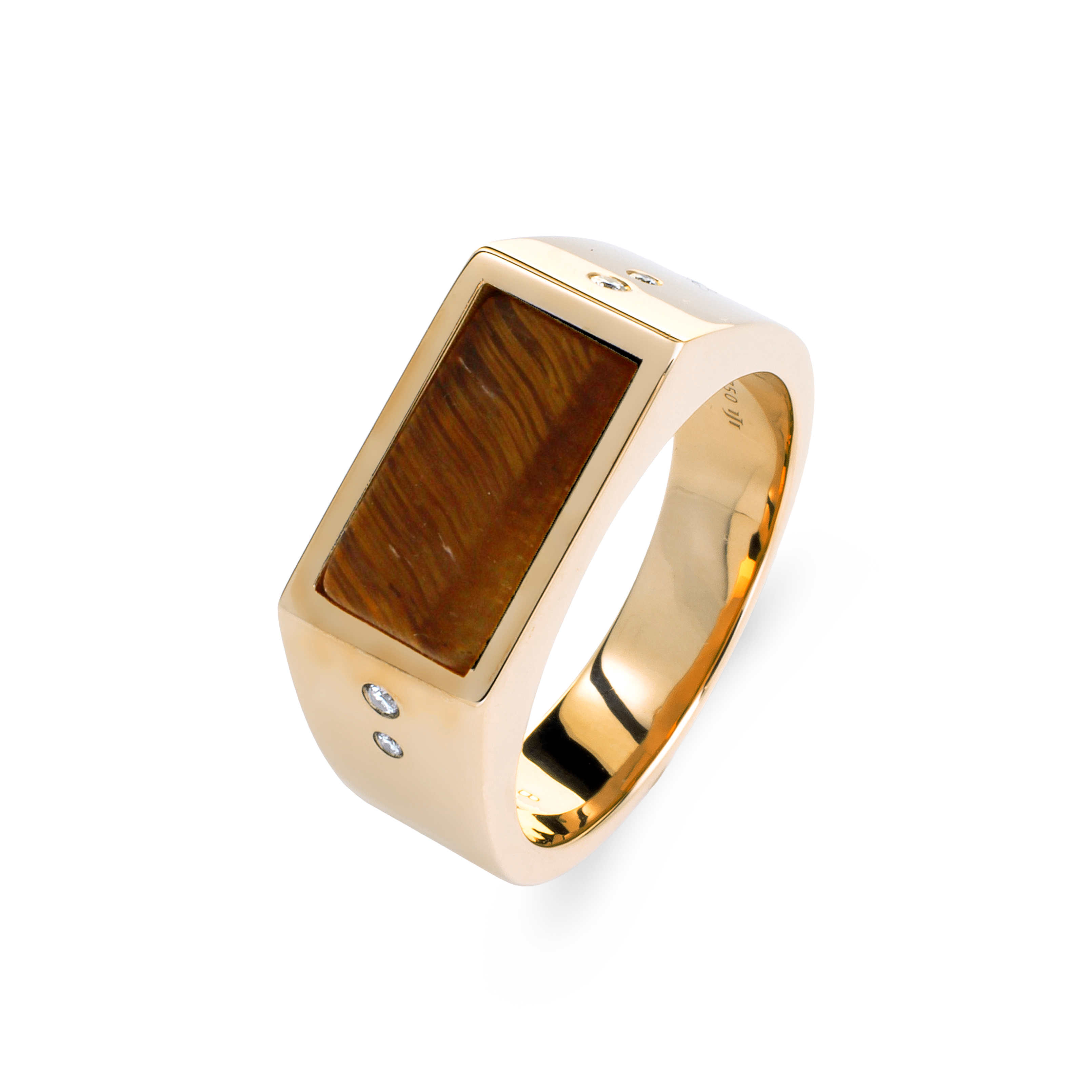 Collection Wolf Men rings & surf Ring Gold, Diamond 0.04 ct, tiger eye, signet