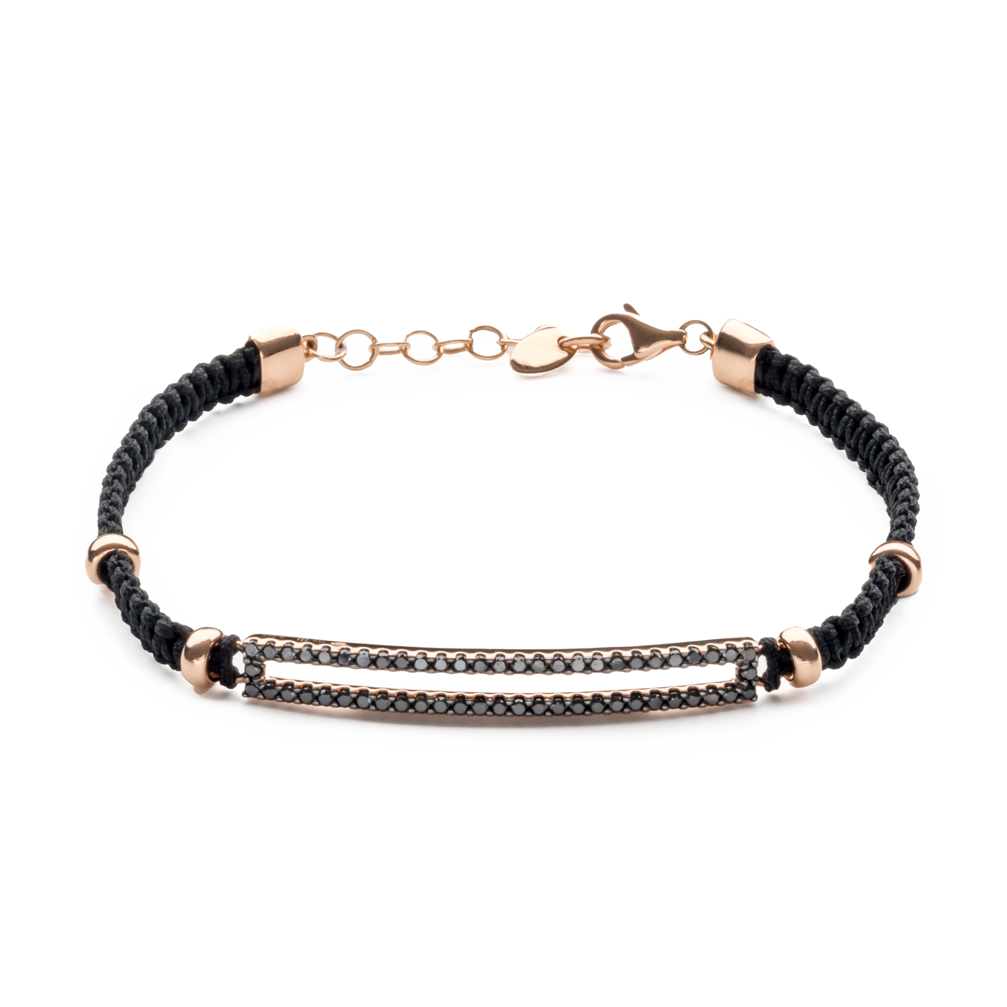 18K rose gold bracelet, 56 stones, double-bar black diamond clasp