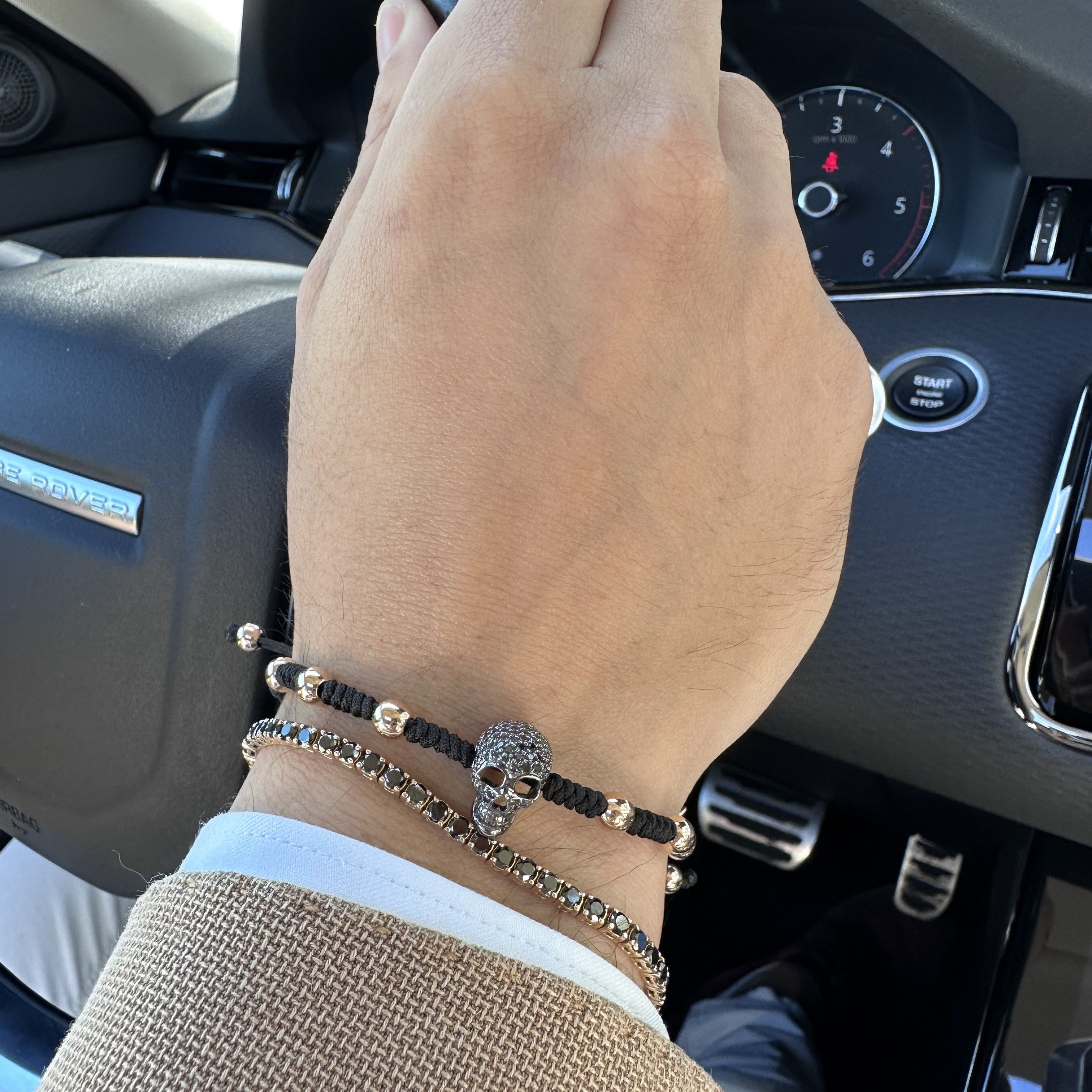 18K rose gold bracelet, black diamond 0.70 ct, 109 stones, 5mm bead, Adjustable nylon cord from 15cm to 25cm