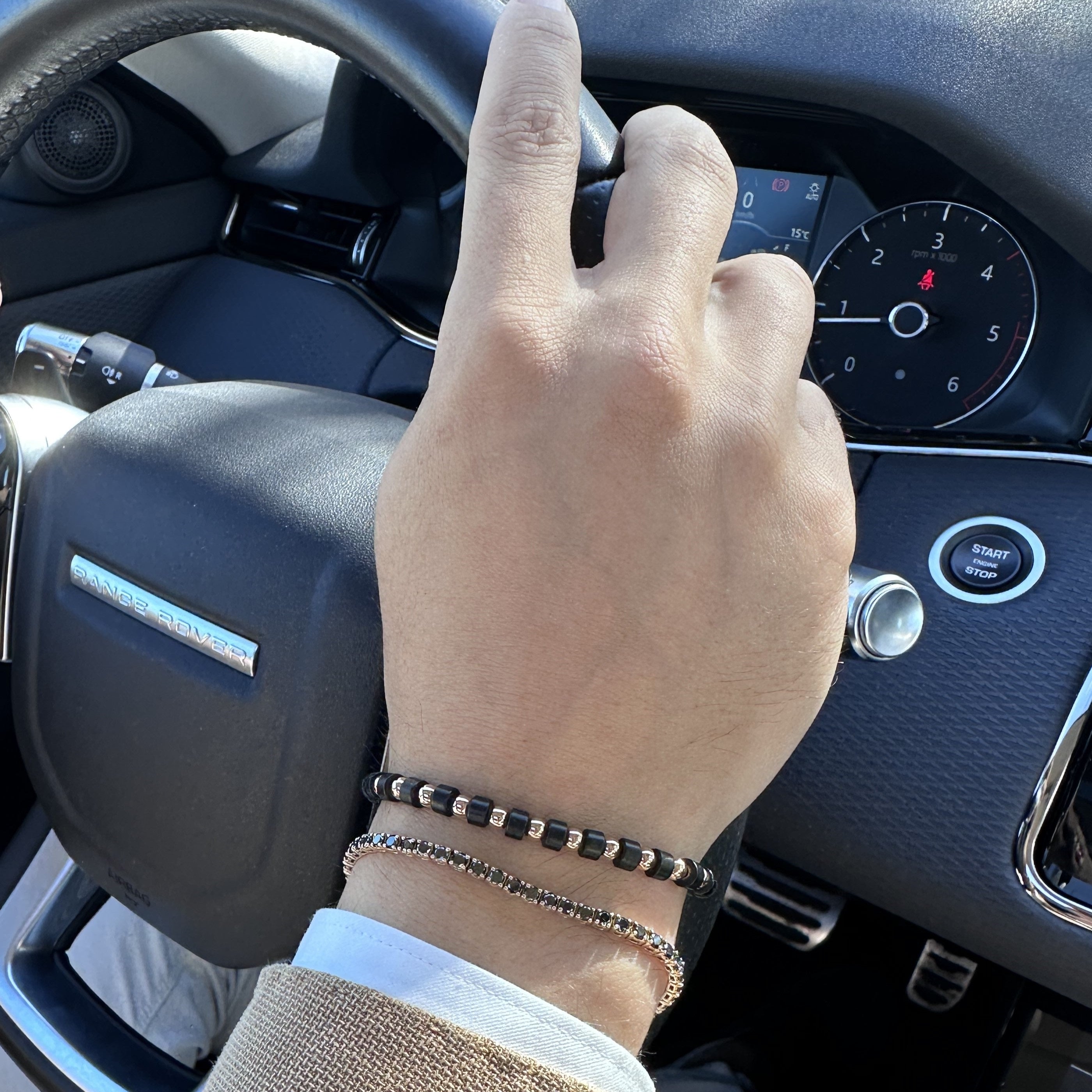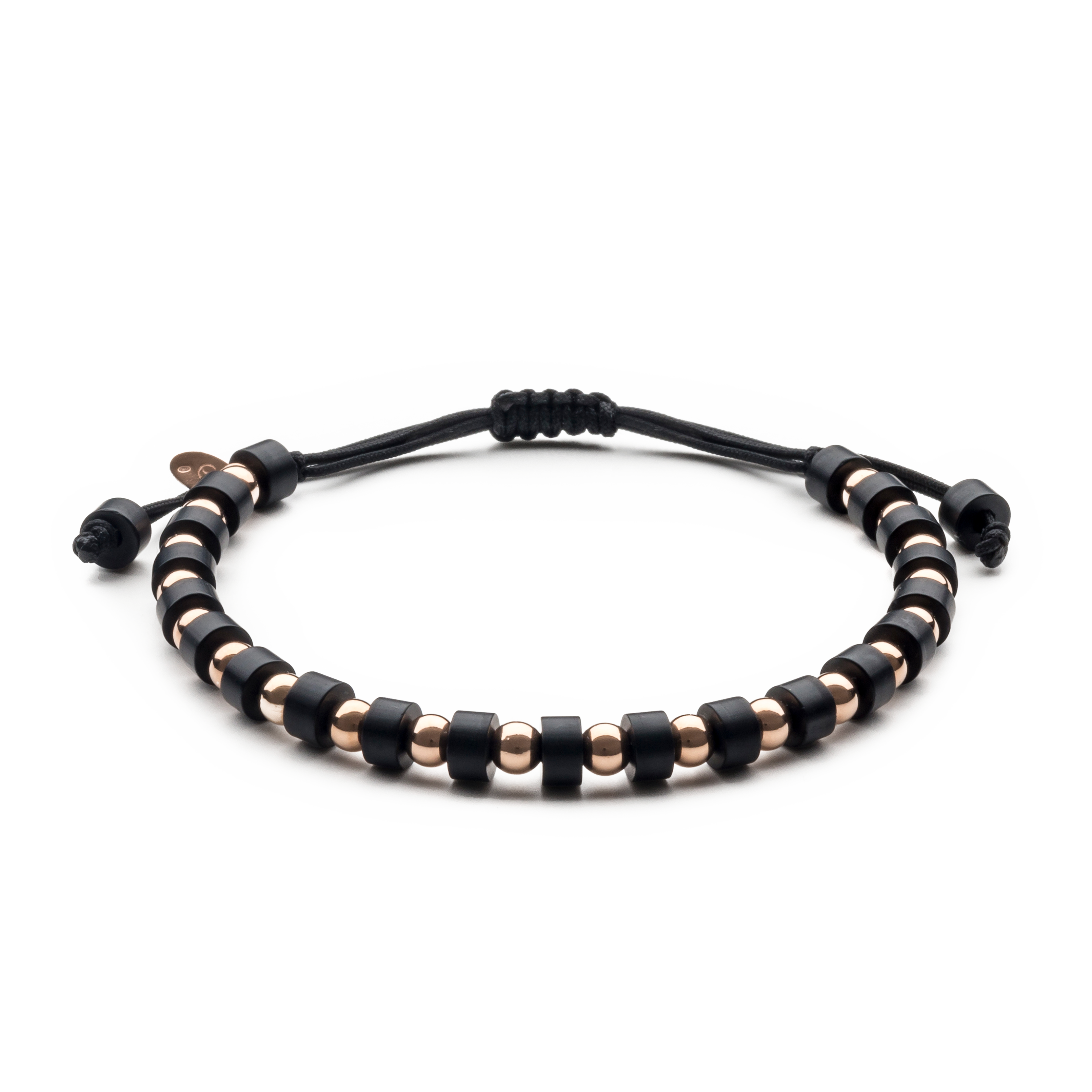 18K rose gold bracelet, onyx, 4mm bead, Adjustable nylon cord from 15cm to 25cm