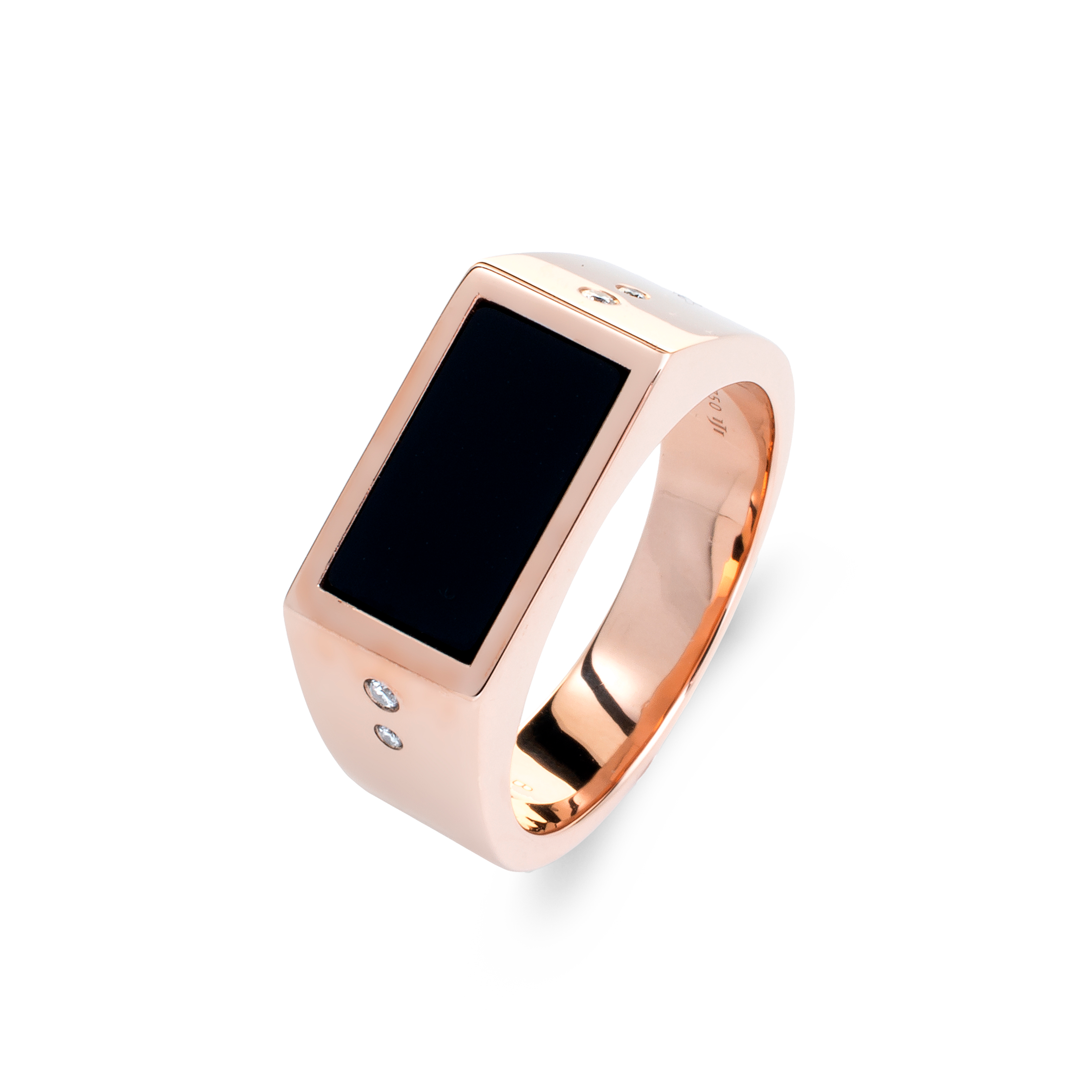 18K rose gold ring, diamond color GH, clarity SI 0.04 ct, onyx, 4 stones