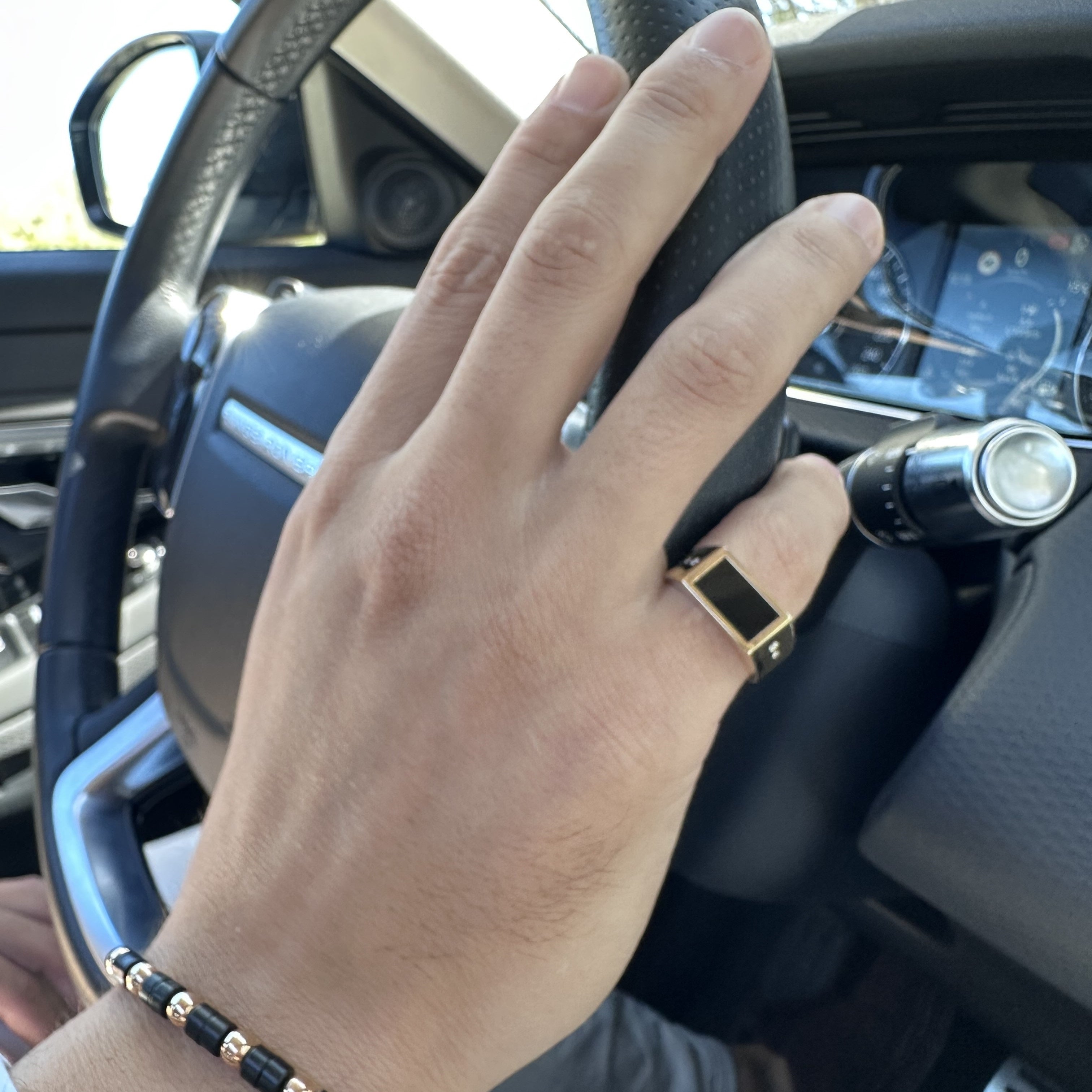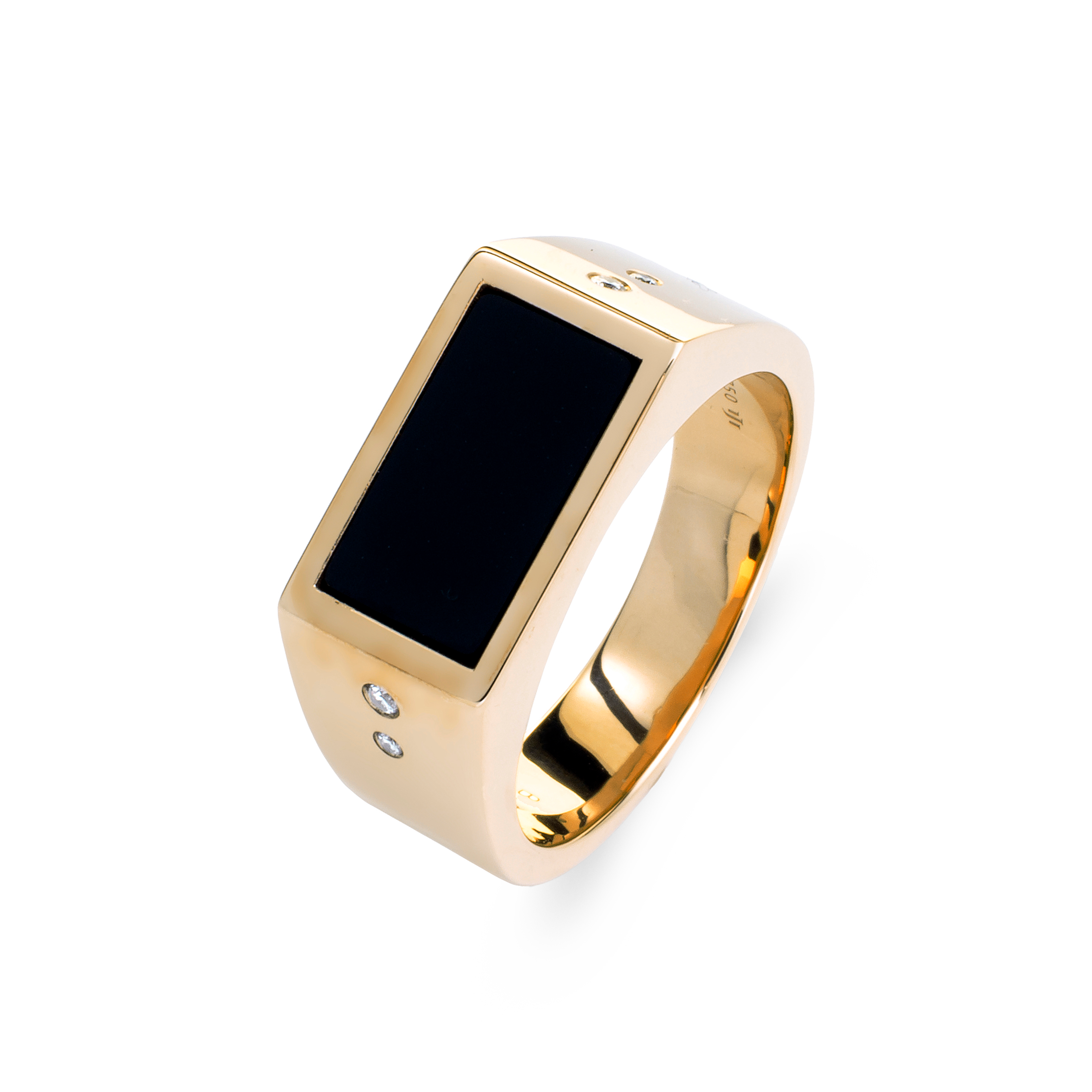 Collection Wolf Men rings & surf Ring Gold, Diamond 0.04 ct, onyx, signet