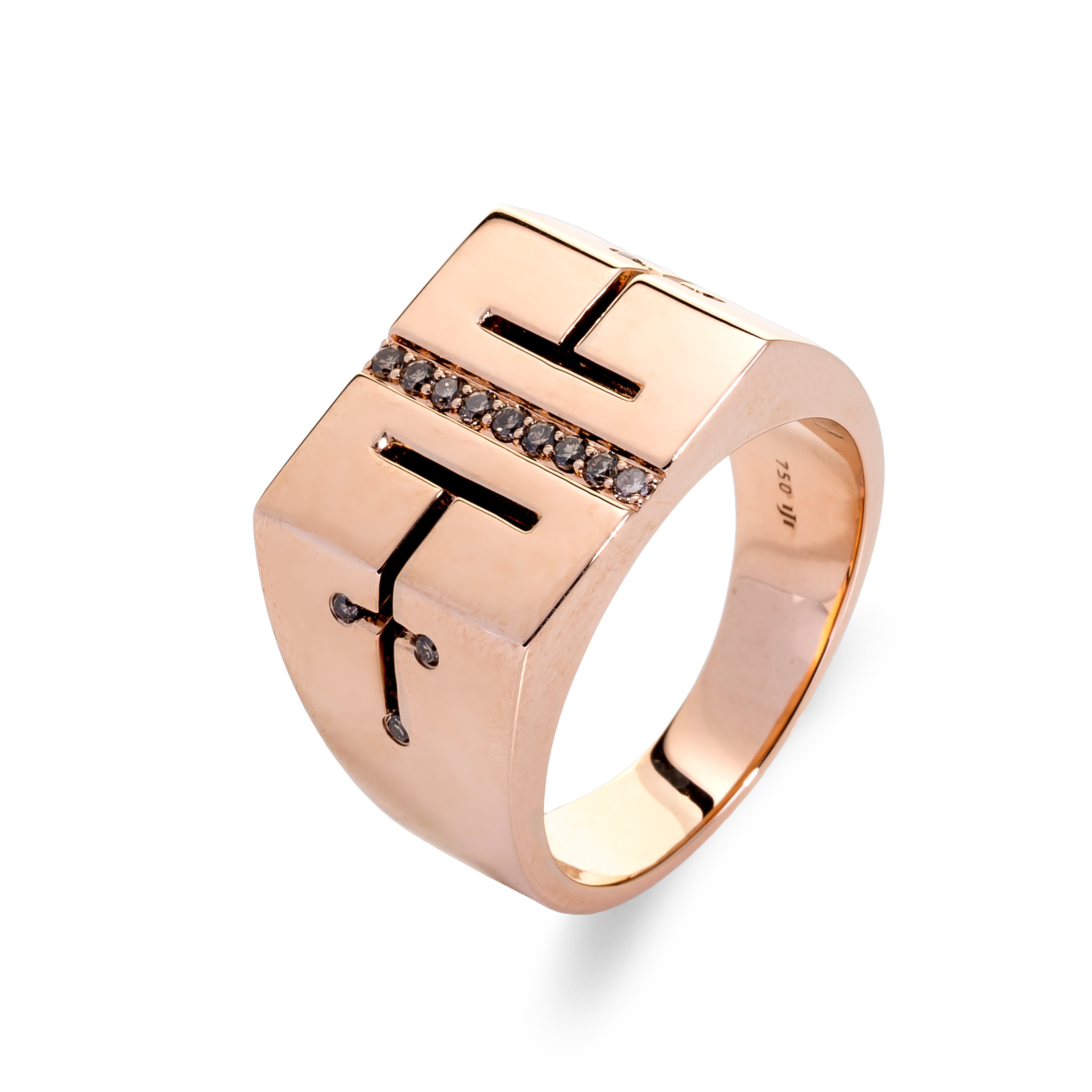 Collection Wolf Men rings & surf Ring Gold, Brown diamond 0.21 ct, signet