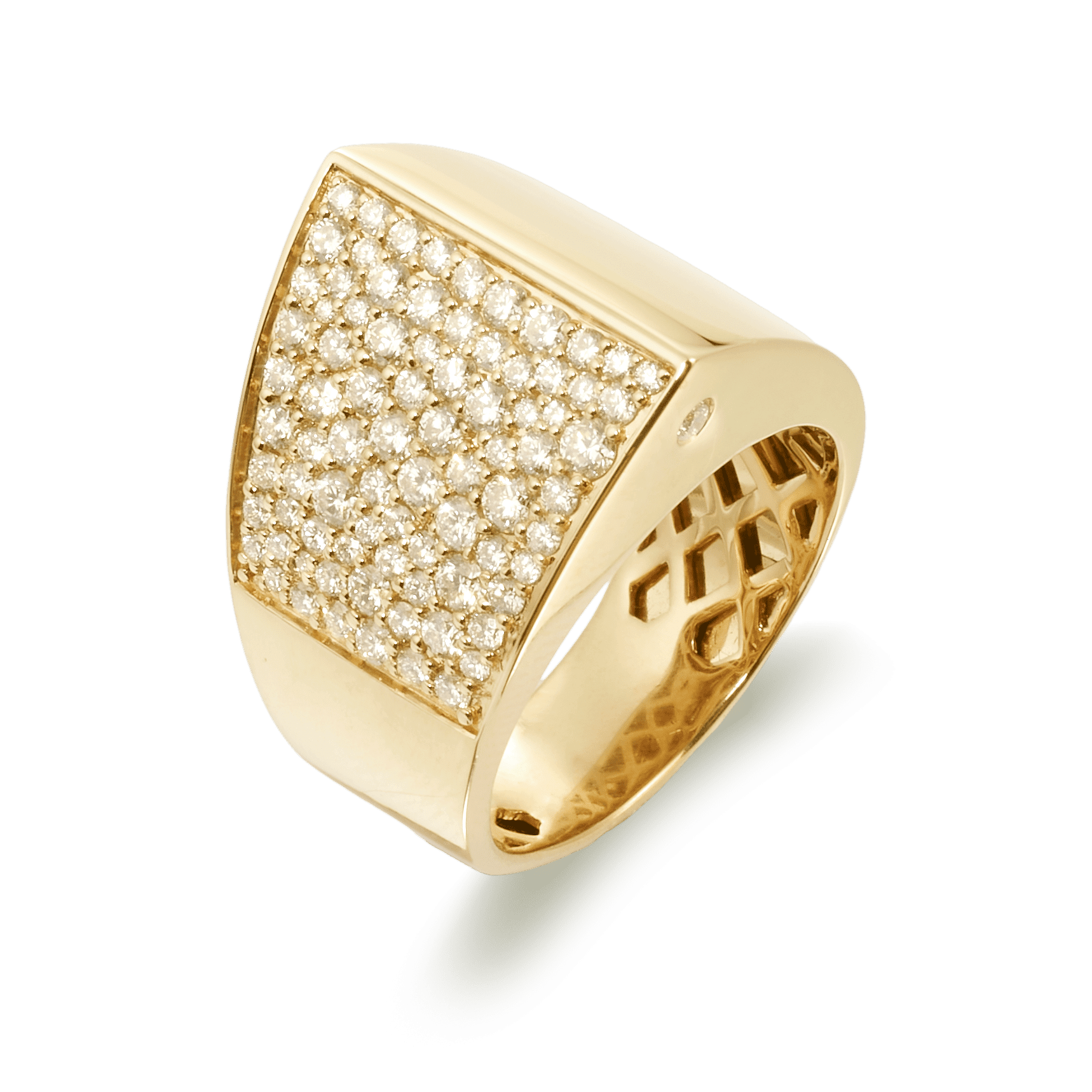 18K yellow gold ring, diamond color GH, clarity SI 1.13 ct, 84 stones