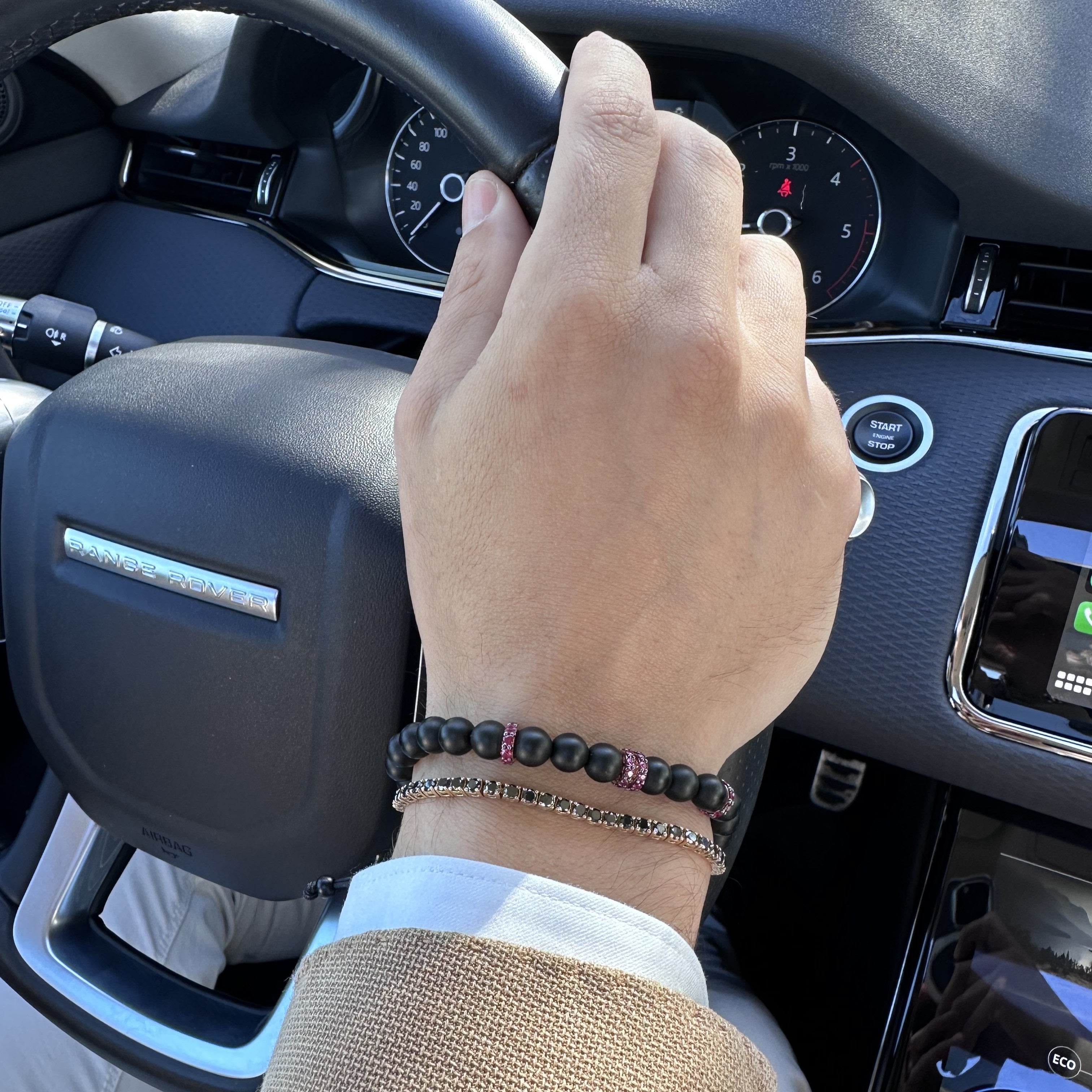 18K rose gold bracelet, onyx, double-wheel ruby, Adjustable nylon cord from 15cm to 25cm