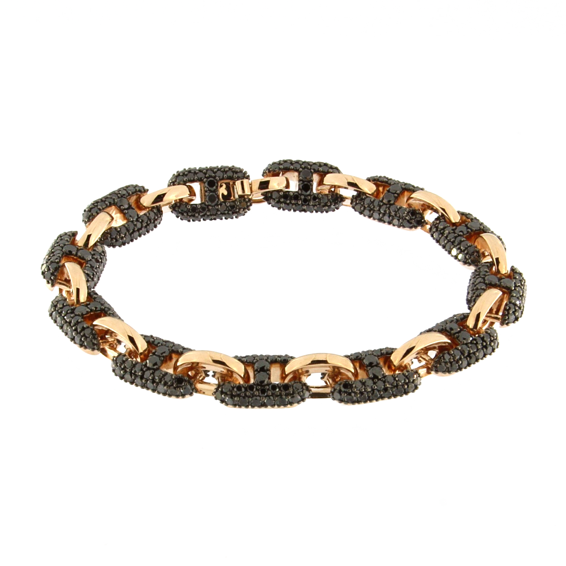18K rose gold bracelet, black diamond 5.27 ct, 382 stones