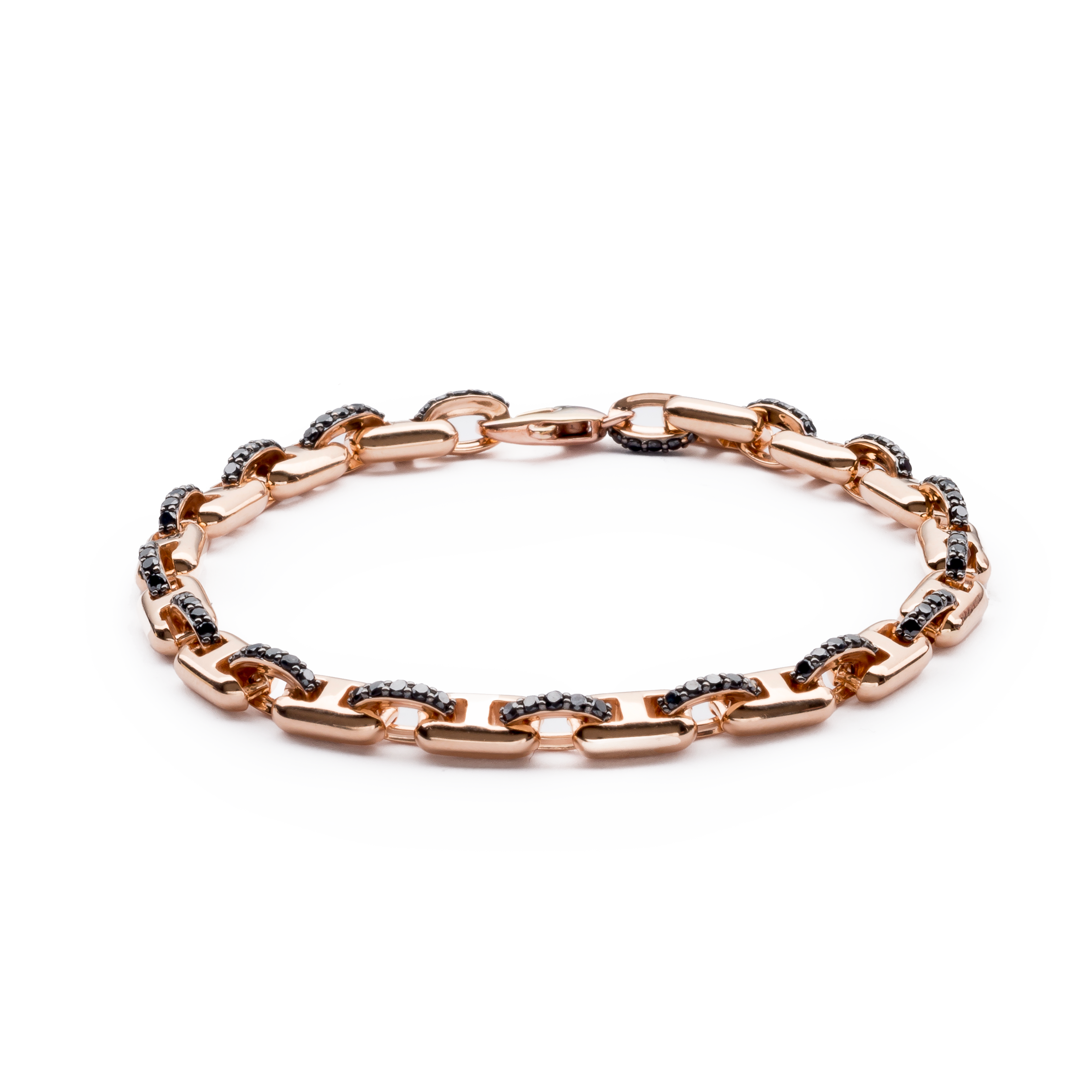 18K rose gold bracelet, black diamond 0.96 ct, 85 stones, pear-shaped lobster clasp