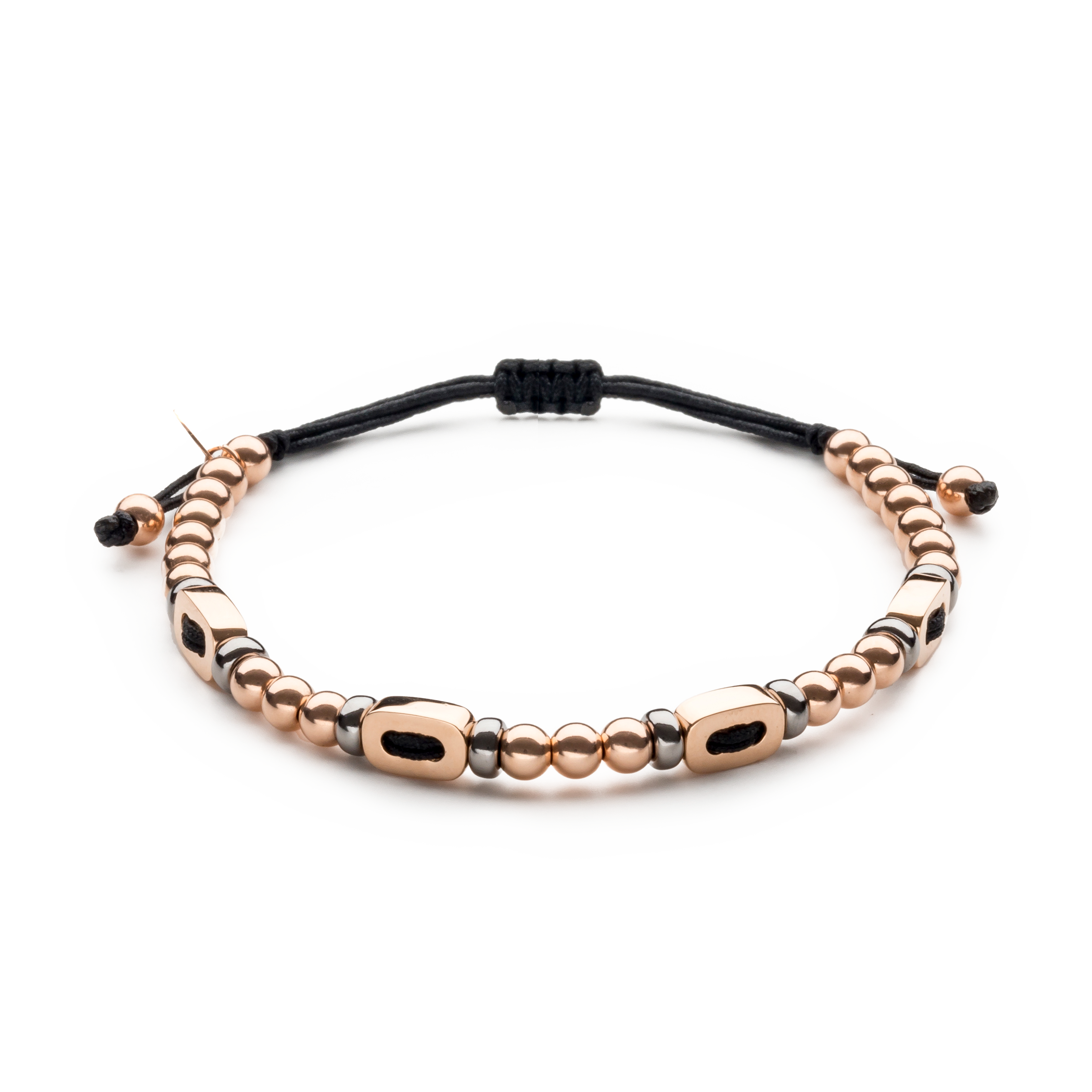 18K rose gold bracelet, smooth link 4mm bead, Adjustable nylon cord from 15cm to 25cm