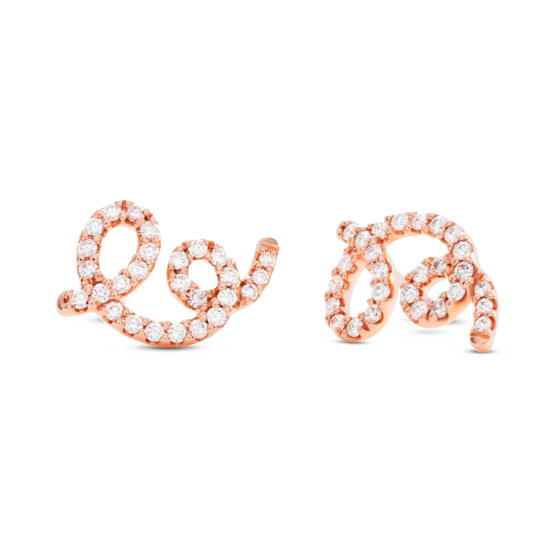 18K rose gold earring, diamond color GH, clarity SI 0.48 ct, 54 stones, pressure clasp