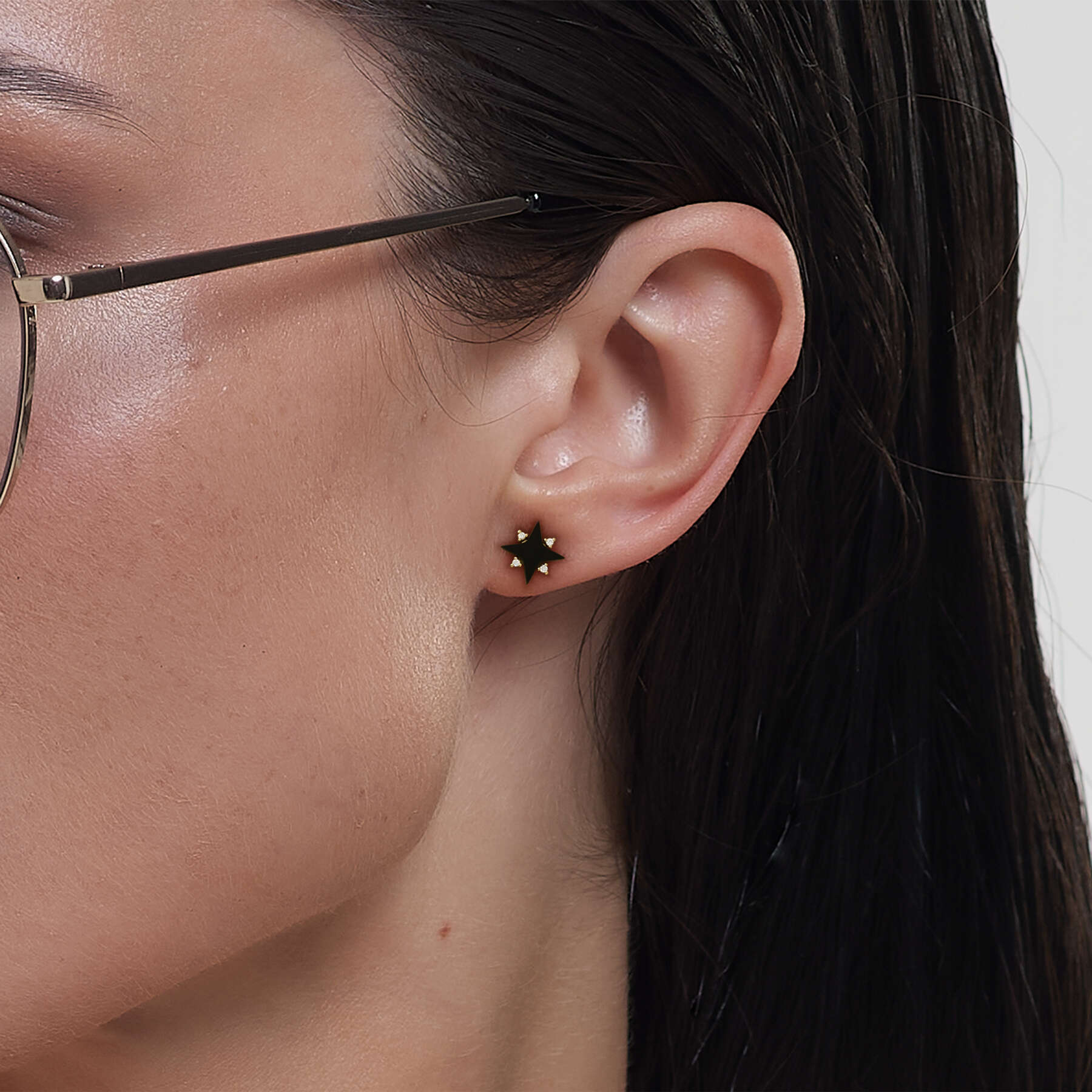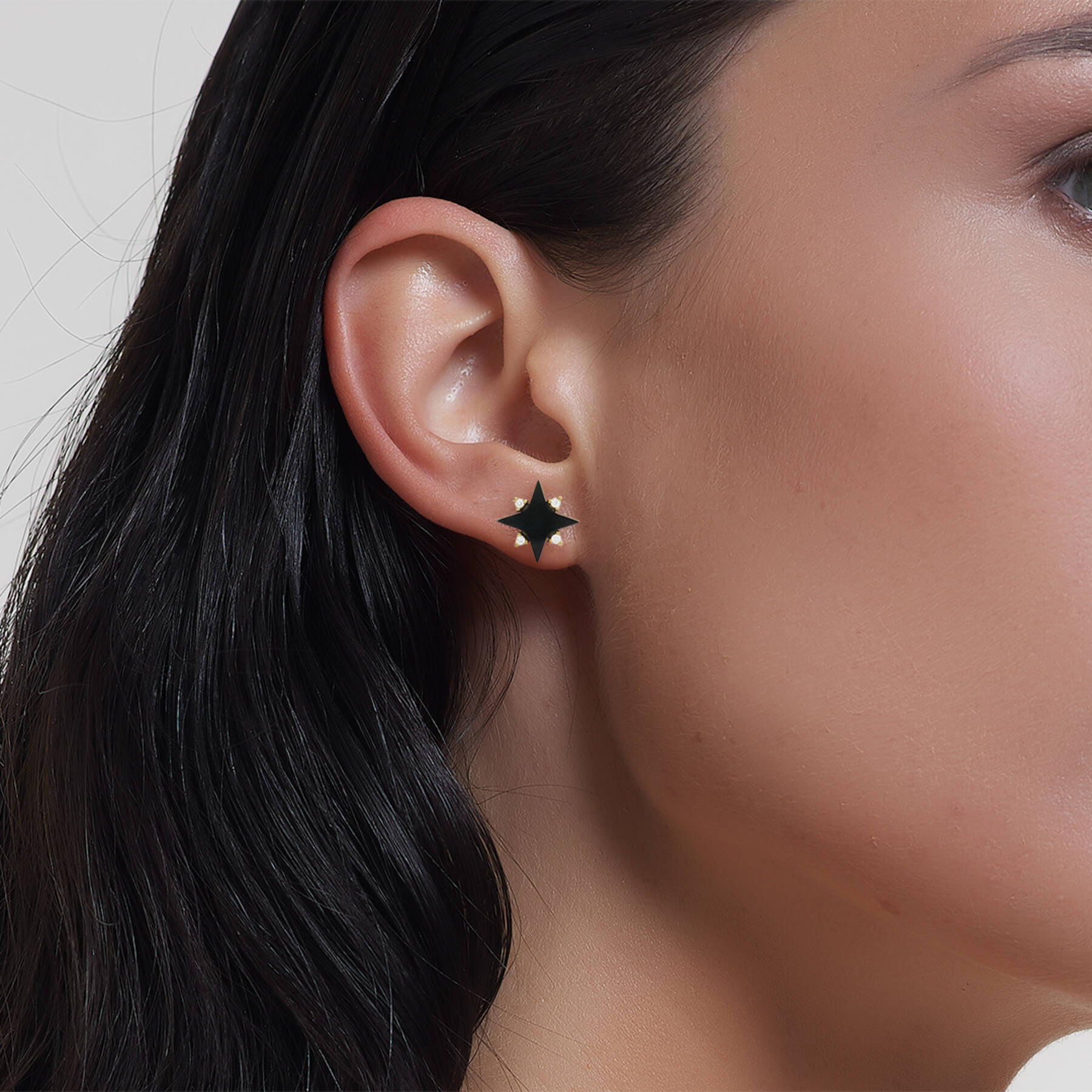 Collection Timeless Earring Gold, Diamond 0.04 ct, onyx, designer