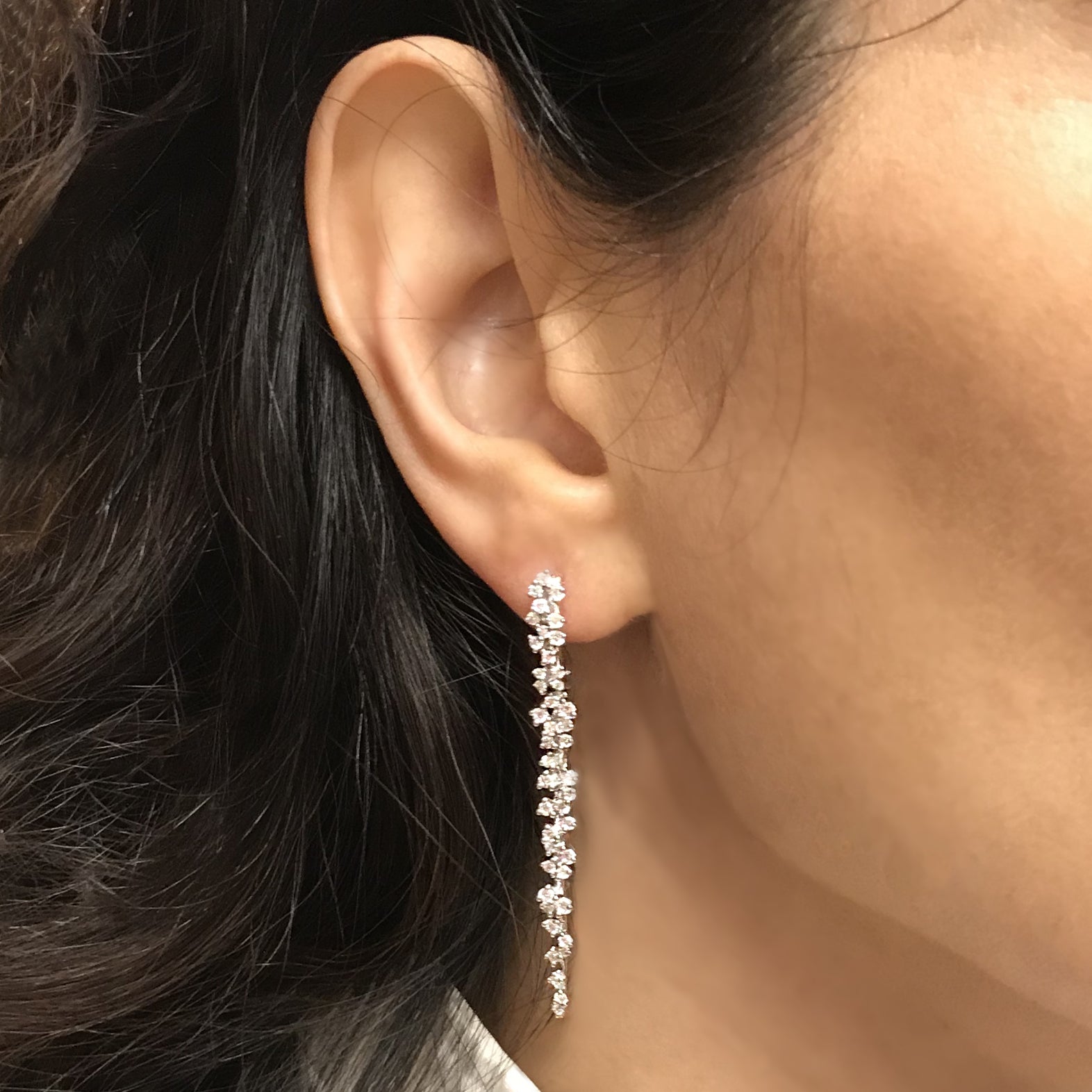 18K white gold earring, diamond color GH, clarity SI 1.21 ct, 86 stones, pressure clasp