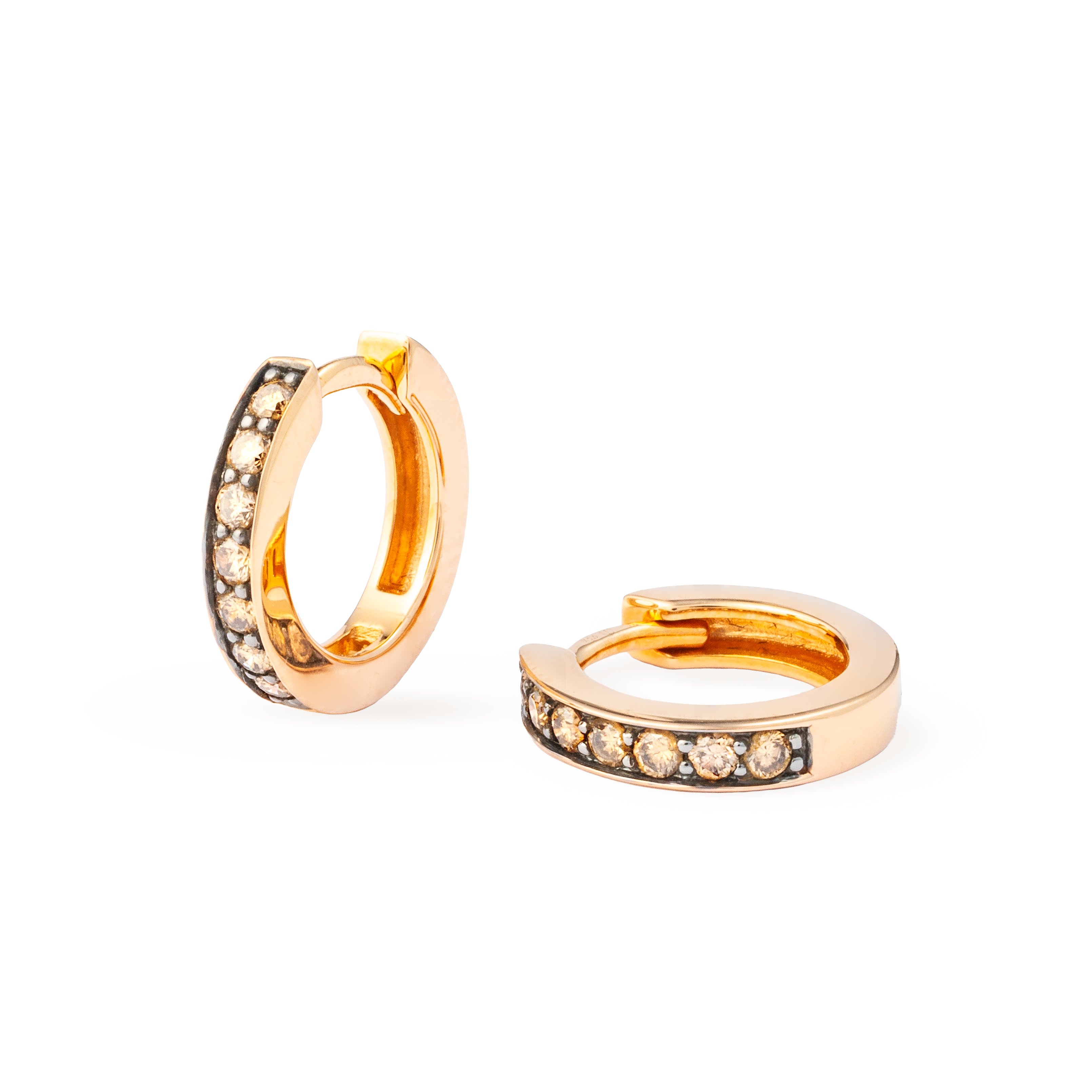 18K rose gold earring, brown diamond 0.22 ct, 14 stones