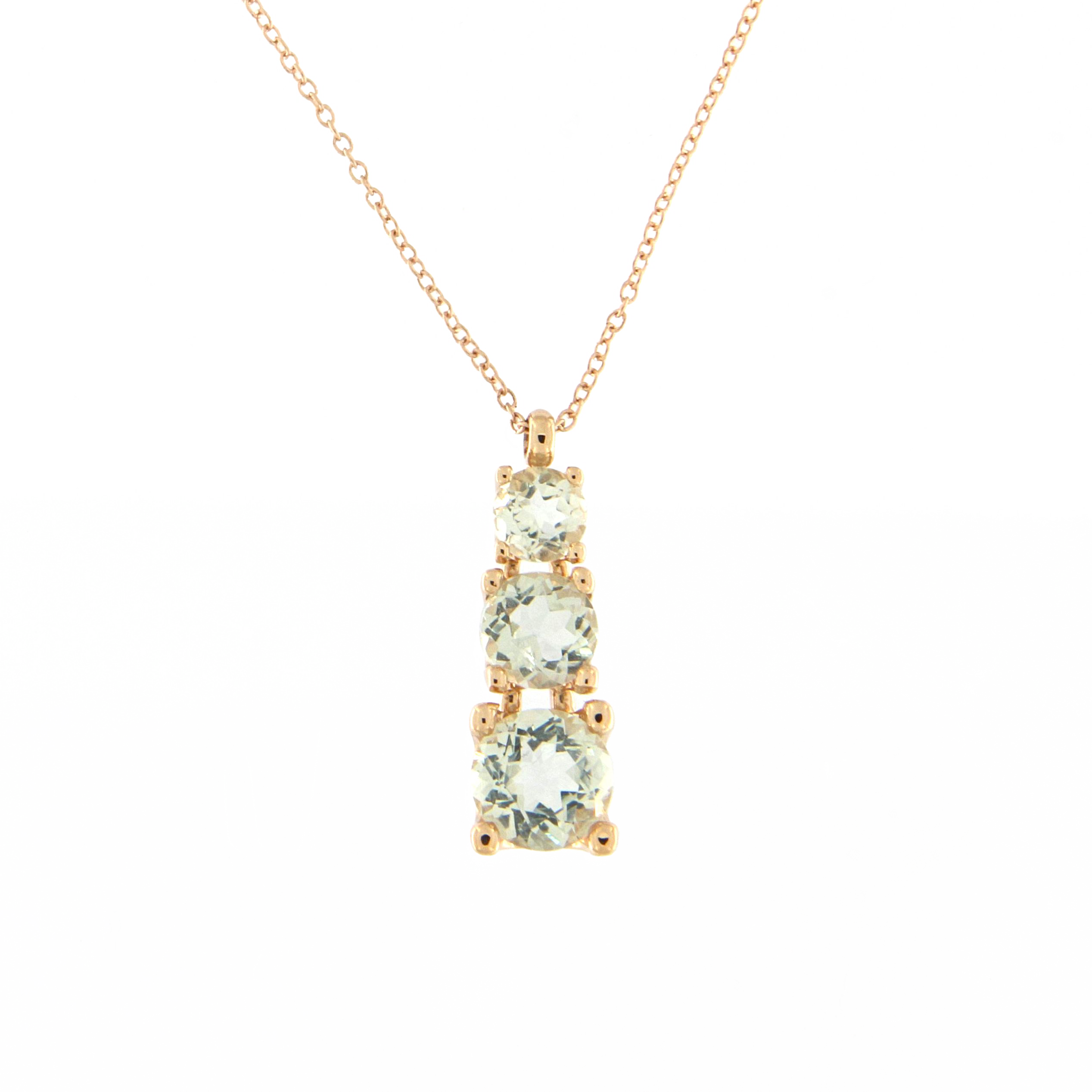 18K rose gold pendant, prasiolite, 42cm rolo chain lobster clasp