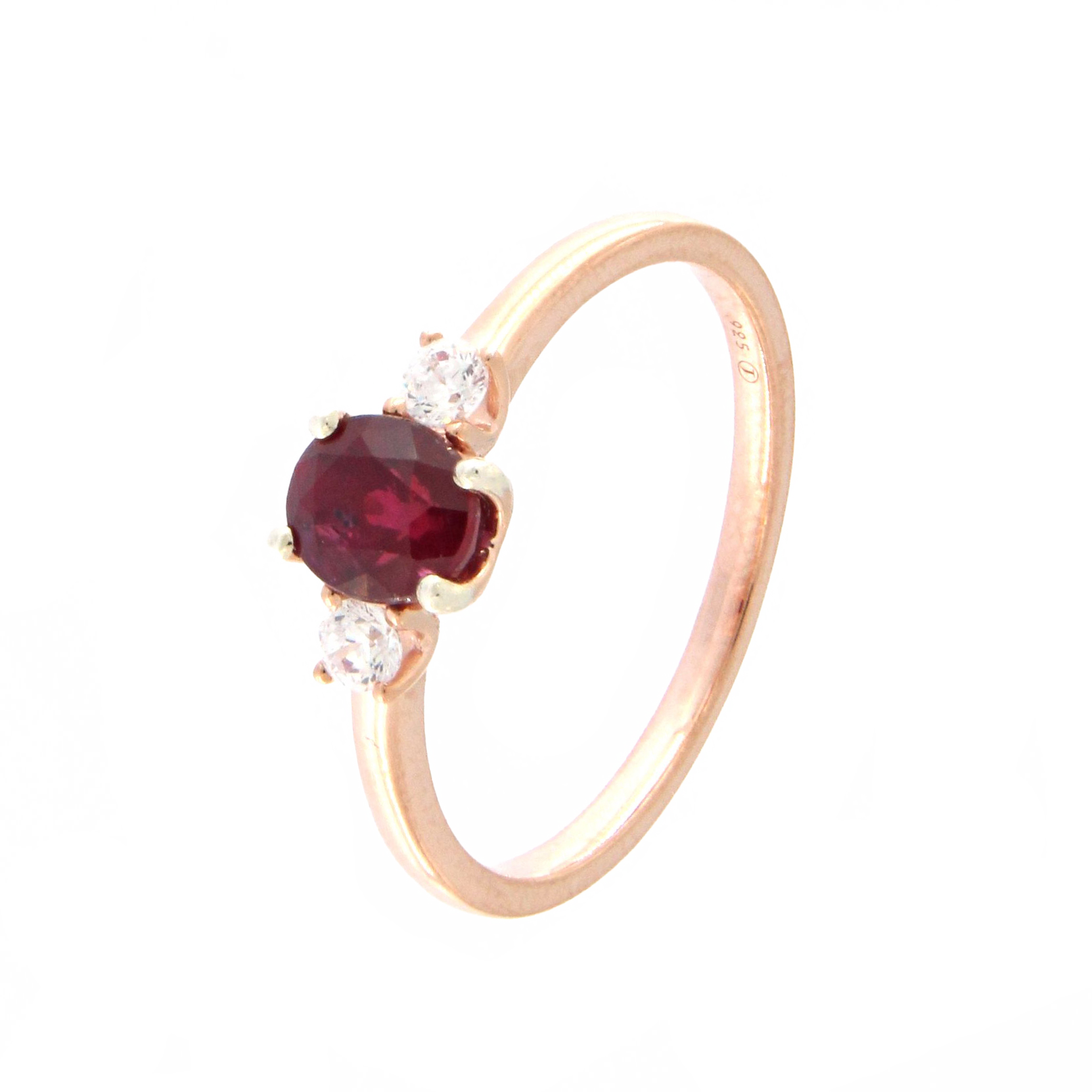 18K rose gold ring, diamond color GH, clarity SI 0.13 ct, ruby, 2 stones