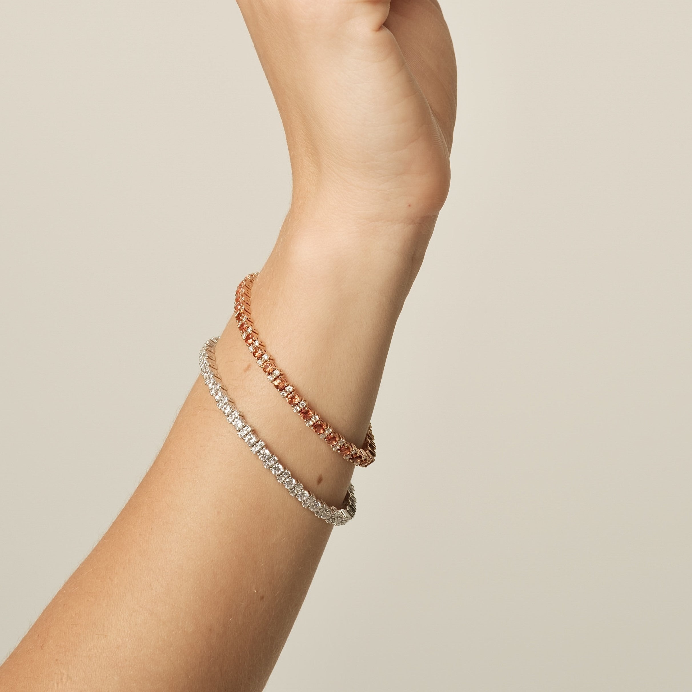 Bracelet or rose 18 carats, diamant couleur GH, pureté SI 1.44 ct, saphir, 102 pierres, 17,5 cm, tailles personnalisées sur demande