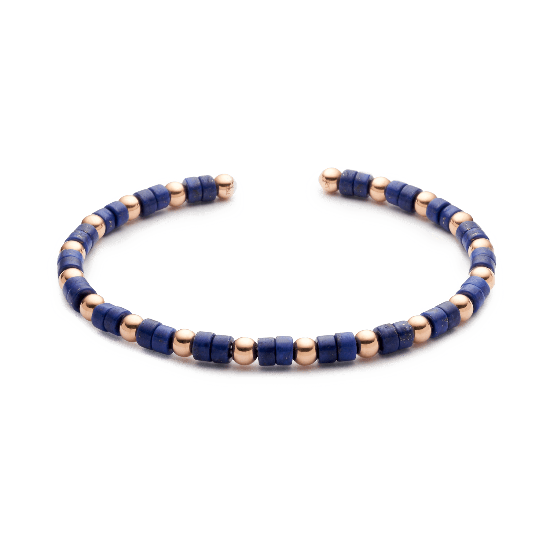 Bracelet or rose 18 carats, lapis lazuli, titane taille S (6 x 5 cm) perle de 4 mm
