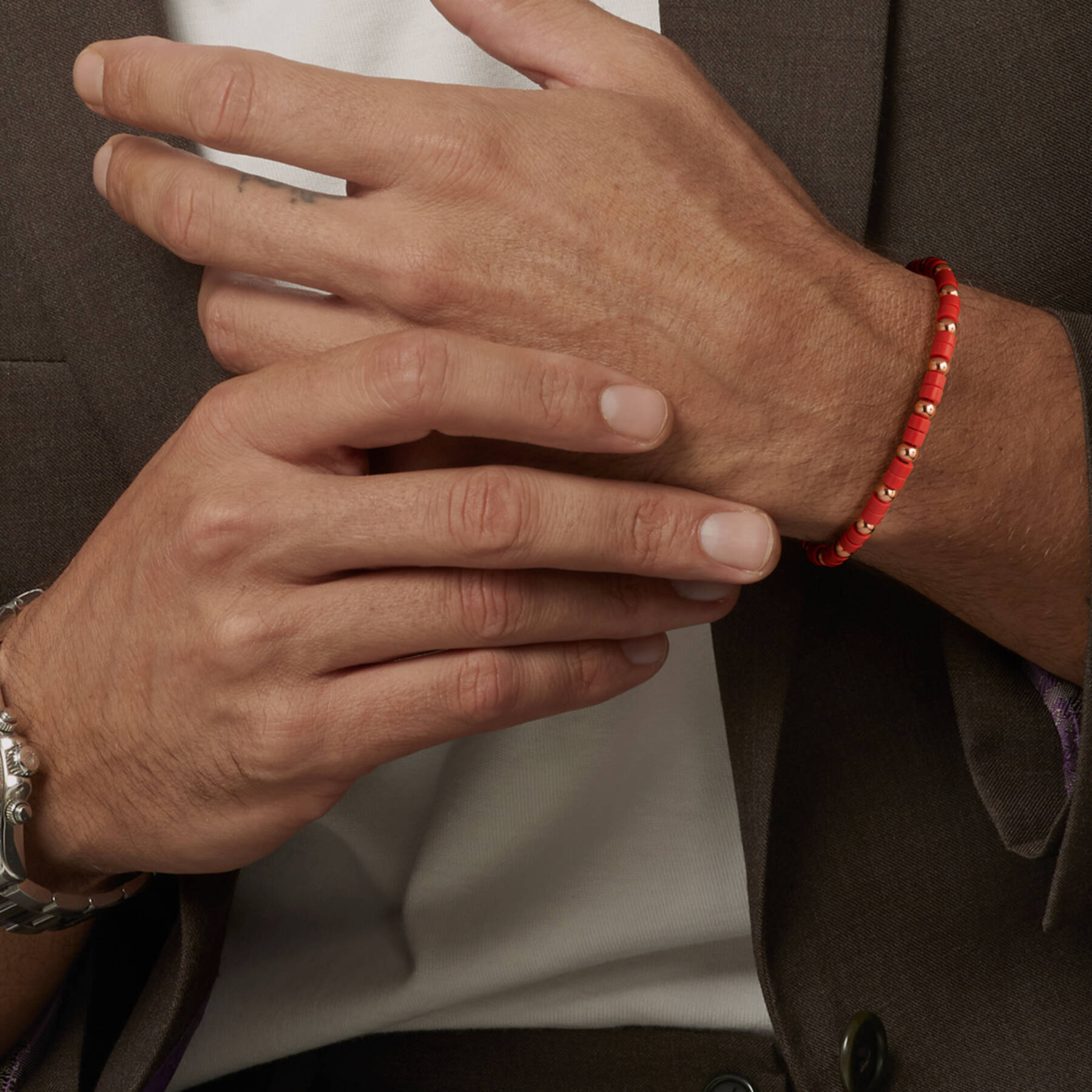 Bracelet or rose 18 carats, corail p, titane taille S (6 x 5 cm) perle de 4 mm