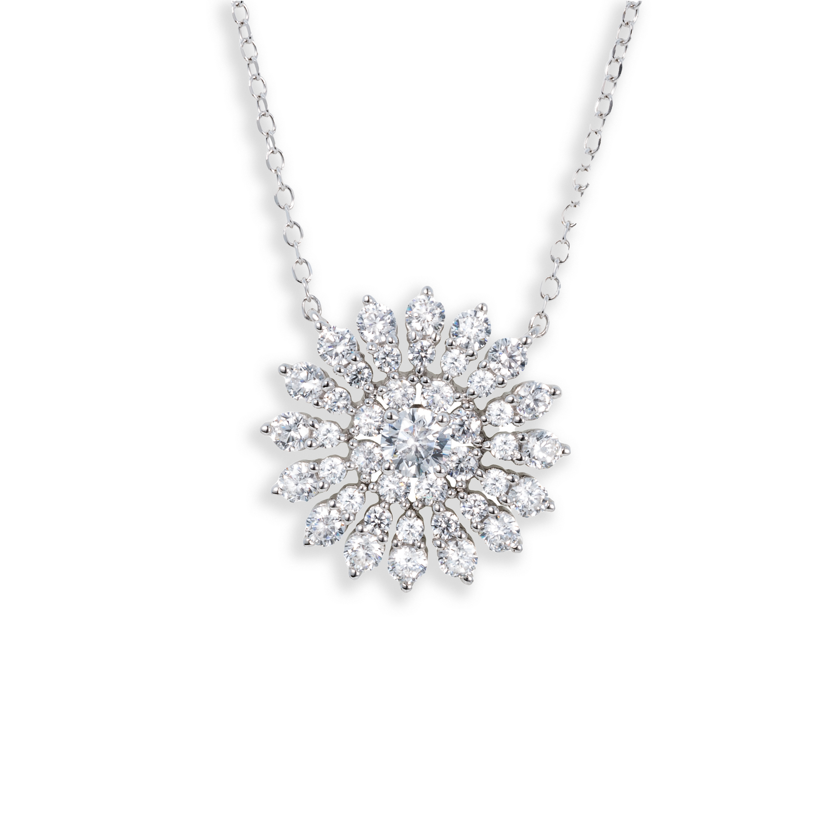 Pendentif or blanc 18 carats, diamant couleur GH, pureté SI 1.39 ct, 41 pierres, chaîne forçatina 42cm fermoir mousqueton