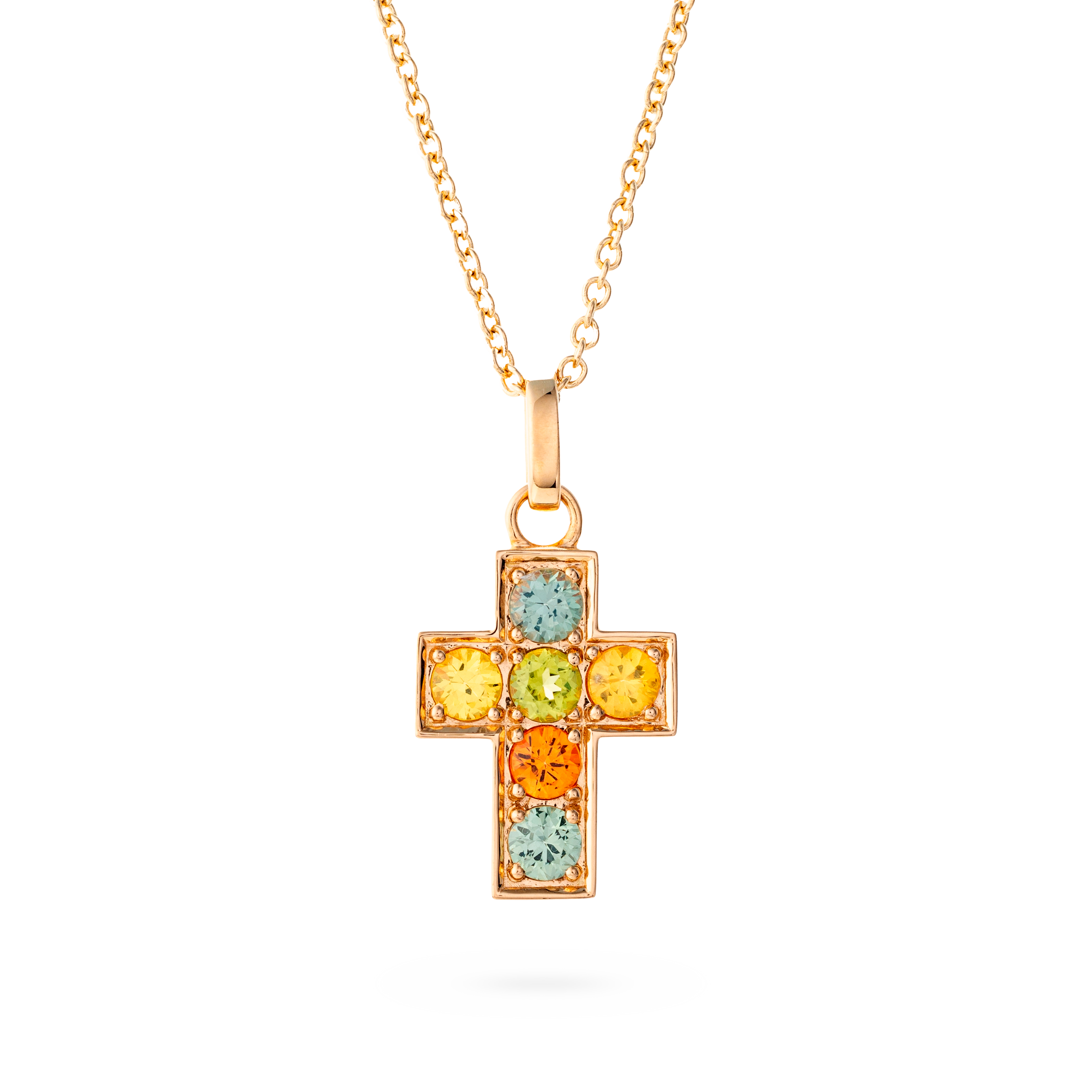Pendentif or jaune 18 carats, péridot et saphir, chaîne rolo 45cm fermoir mousqueton