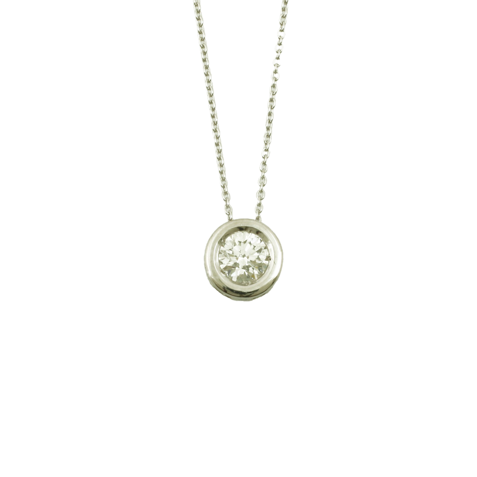 Pendentif or blanc 18 carats, diamant couleur GH, pureté SI 0.05 ct, 1 pierres, chaîne 42cm fermoir mousqueton