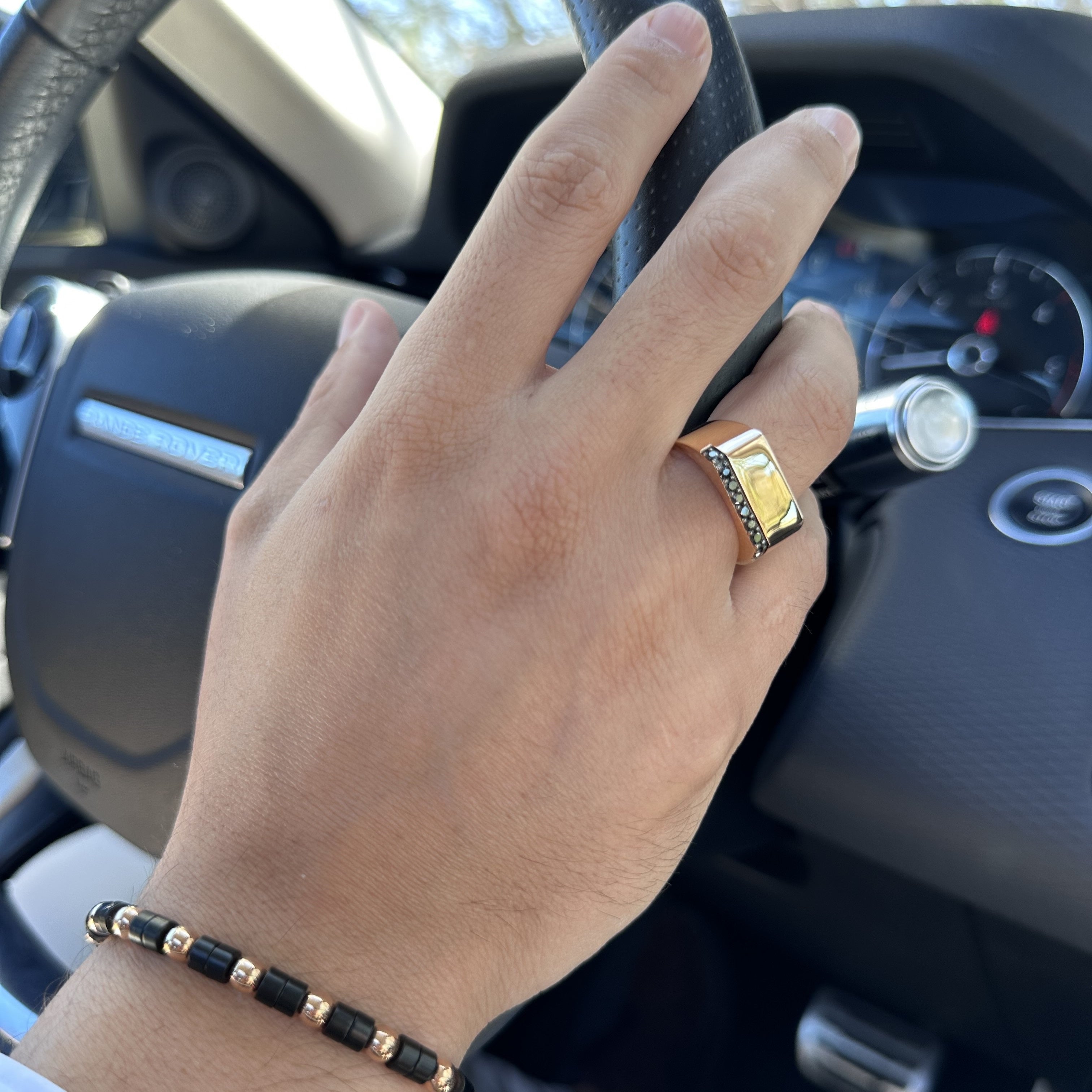 Bague or rose 18 carats, diamant noir 0.32 ct, 8 pierres