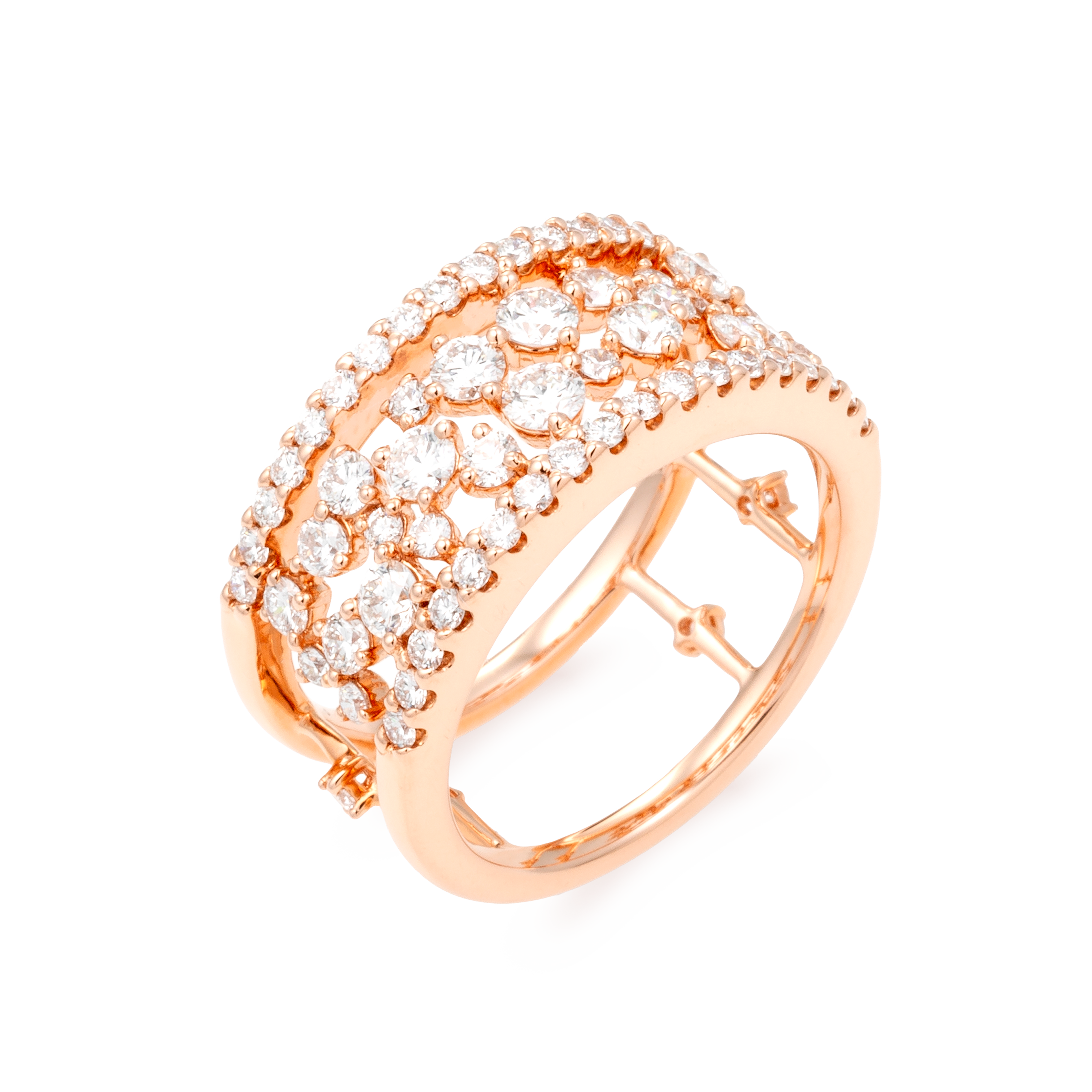 Bague or rose 18 carats, diamant couleur GH, pureté SI 1.49 ct, 68 pierres
