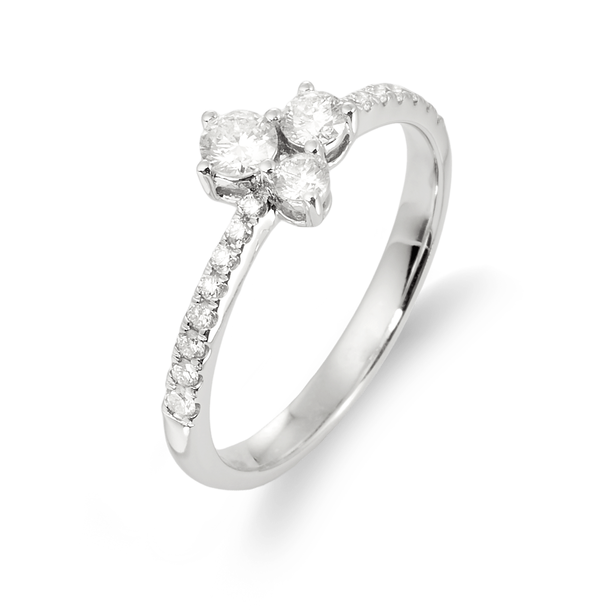 Bague or blanc 18 carats, diamant couleur GH, pureté SI 0.49 ct, 18 pierres