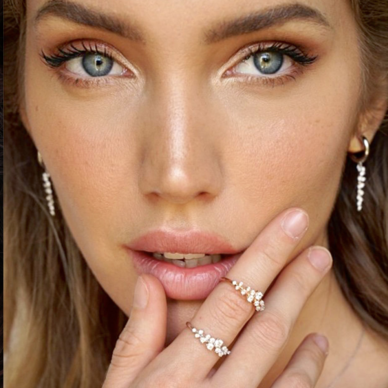 Bague or rose 18 carats, diamant couleur GH, pureté SI 0.42 ct, 14 pierres