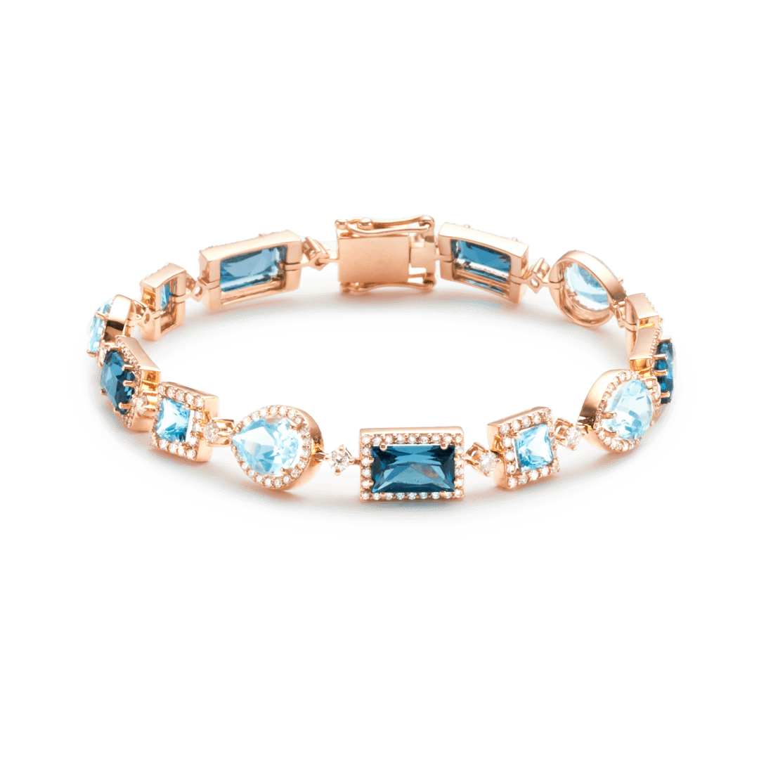 Bracelet or rose 18 carats, diamant couleur GH, pureté SI 2.16 ct, topace sky et london blue, 312 pierres