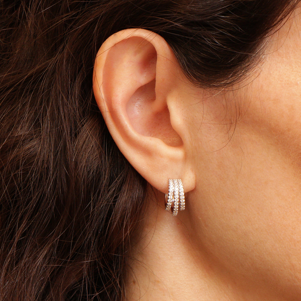 Boucles d´oreilles or blanc 18 carats, diamant couleur GH, pureté SI 0.71 ct, 84 pierres, fermoir à pression