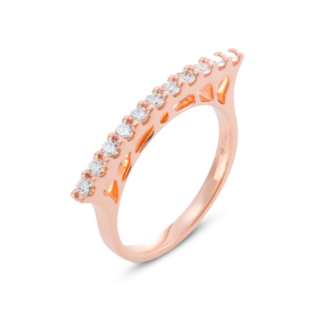 Bague or rose 18 carats, diamant couleur GH, pureté SI 0.38 ct, 11 pierres