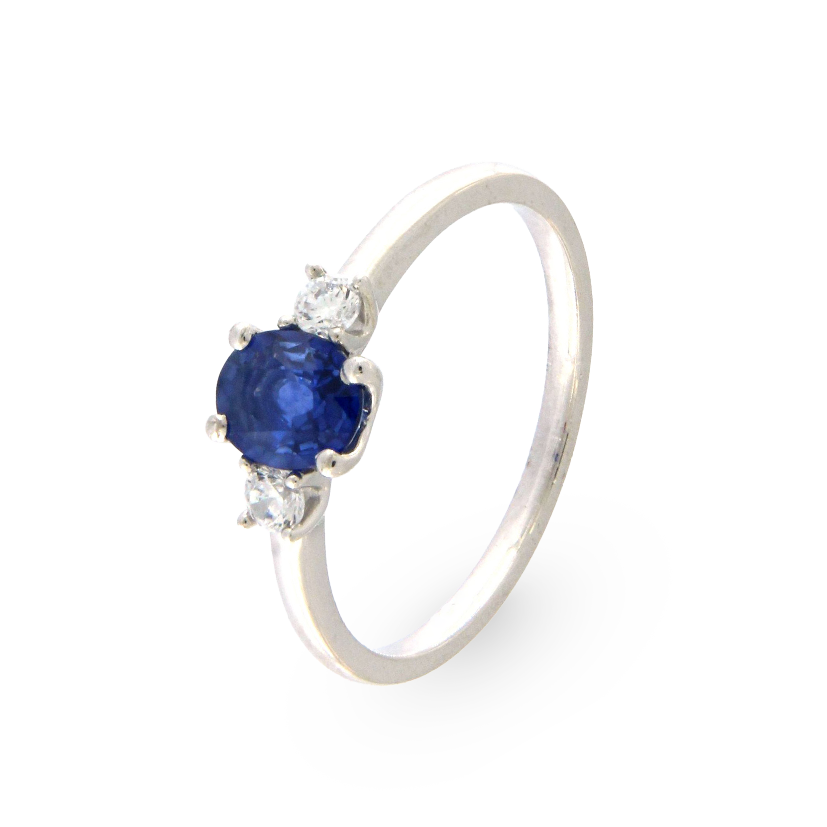 Bague or blanc 18 carats, diamant couleur GH, pureté SI 0.15 ct, saphir, 2 pierres