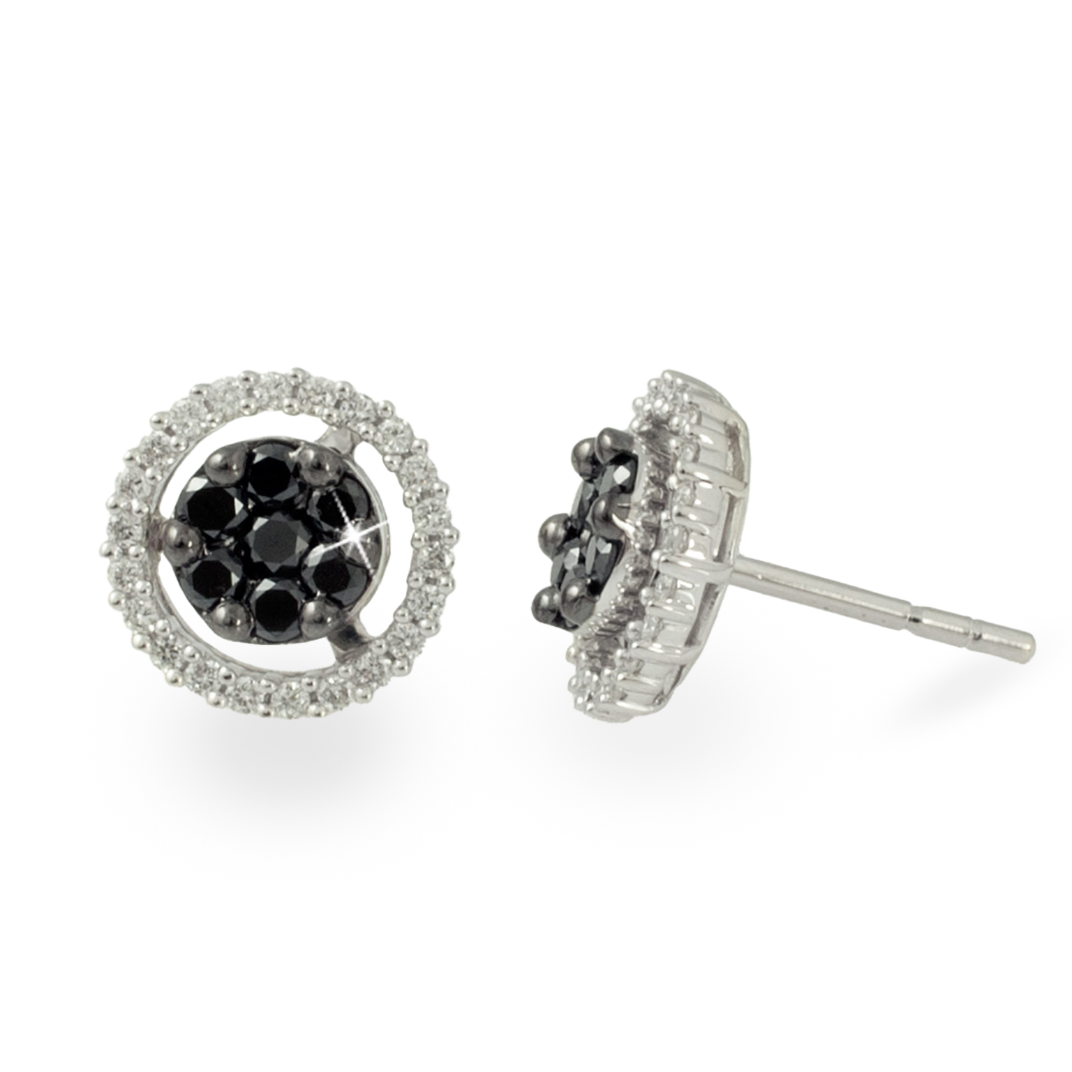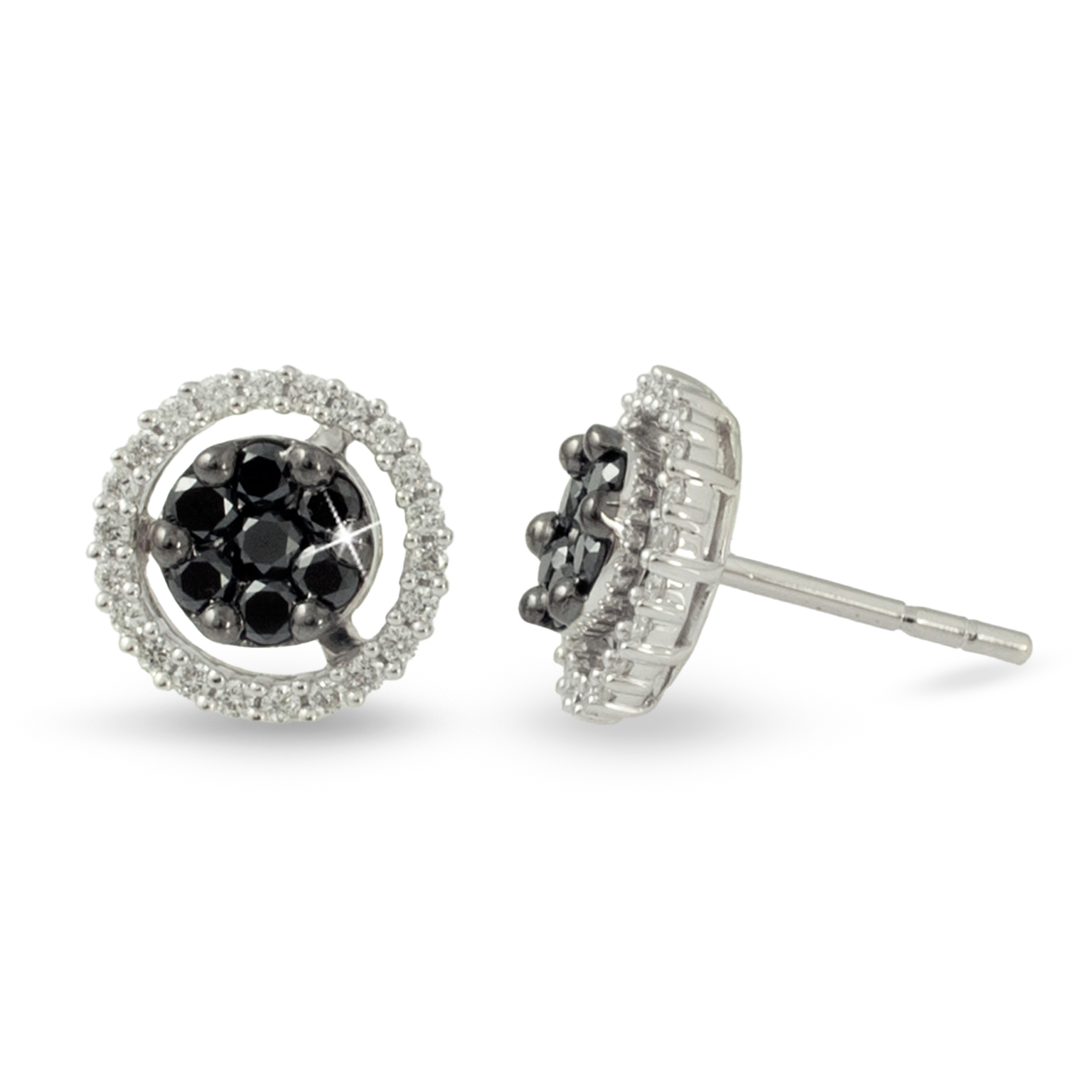 Boucles d´oreilles or blanc 18 carats, diamant couleur GH, pureté SI 0.27 ct et diamant noir 0.58 ct, 58 pierres, fermoir à pression