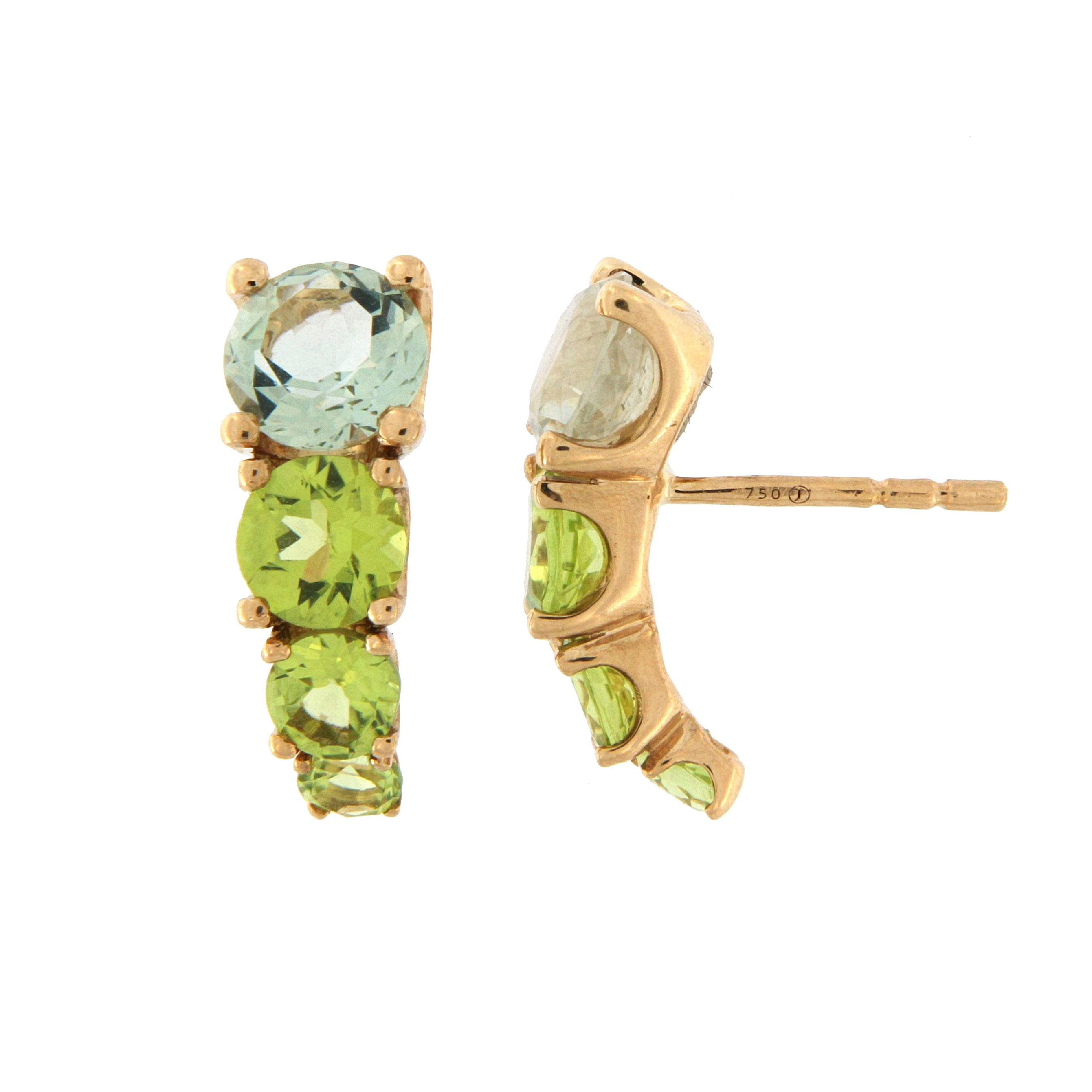 Boucles d´oreilles or rose 18 carats, prasiolite et péridot, fermoir à pression