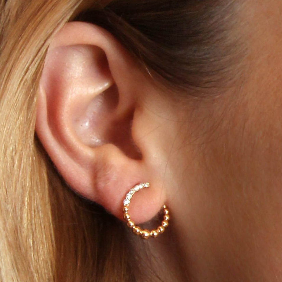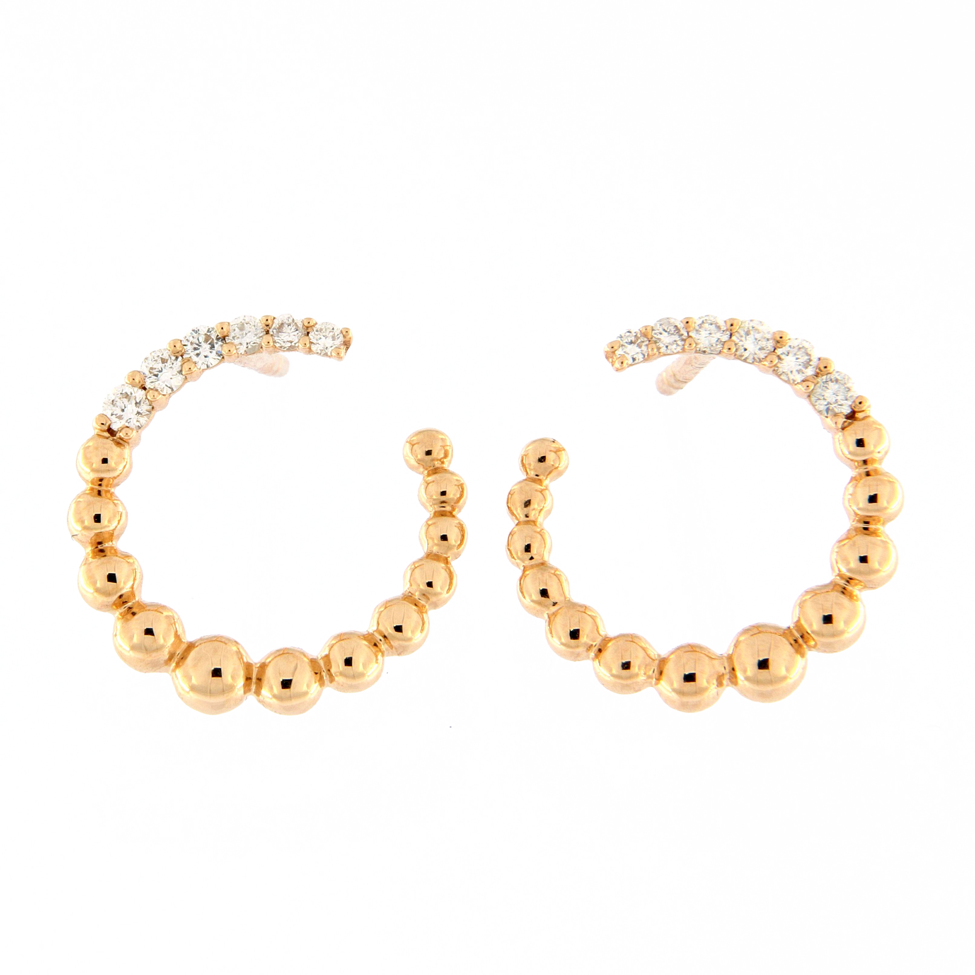 Boucles d´oreilles or rose 18 carats, diamant couleur GH, pureté SI 0.19 ct, 12 pierres, fermoir à pression