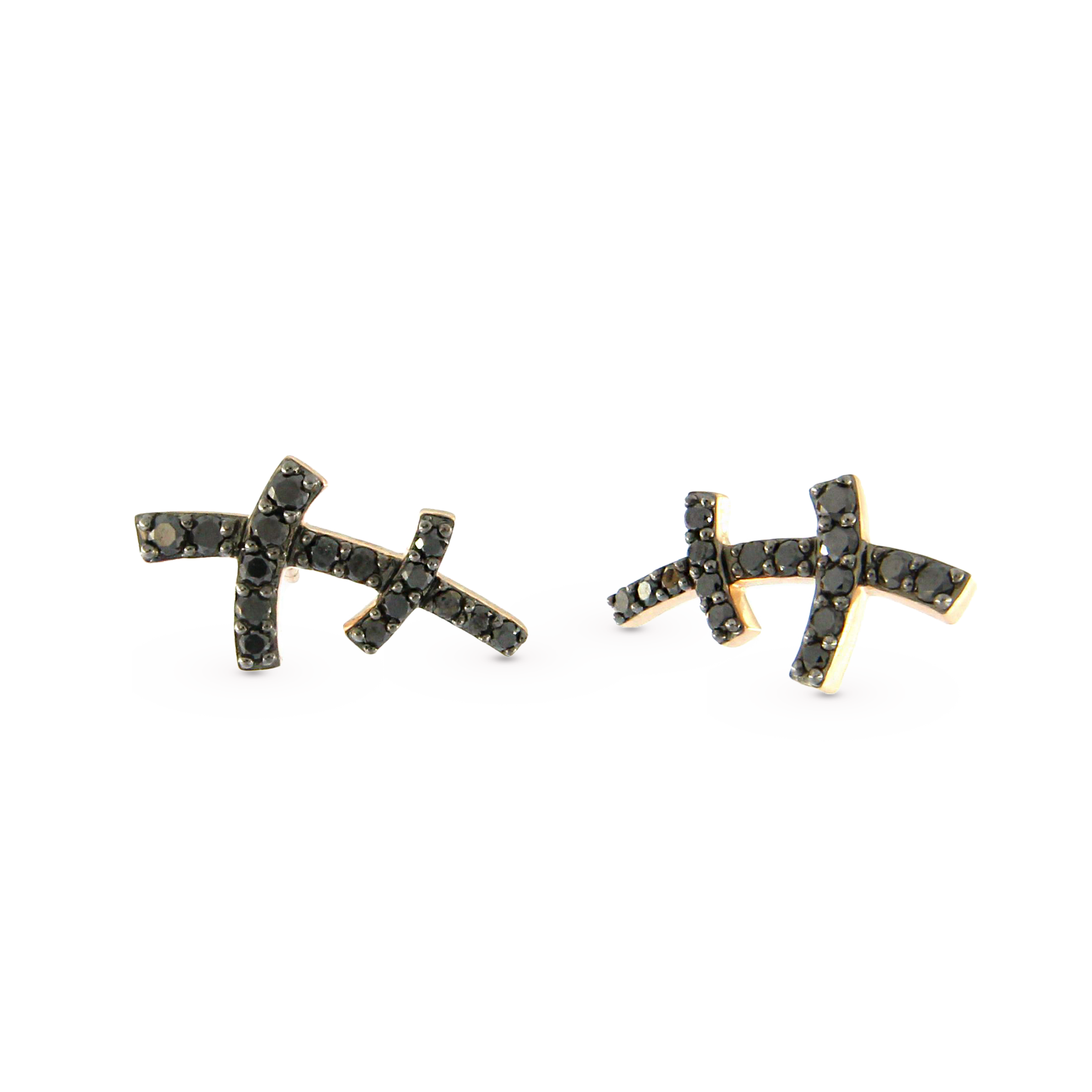 Boucles d´oreilles or rose 18 carats, diamant noir 0.63 ct, 32 pierres, fermoir à pression
