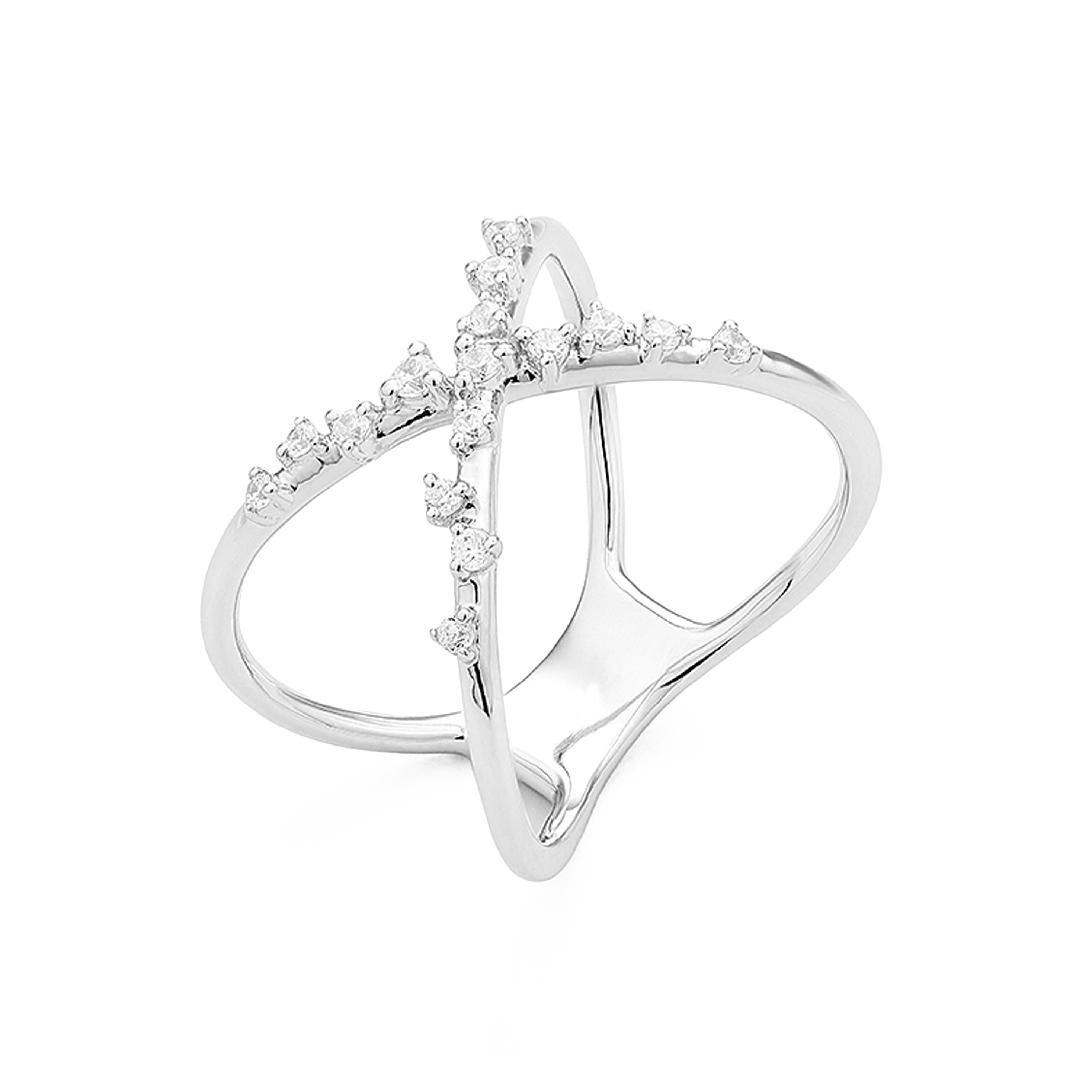 Bague or blanc 18 carats, diamant couleur GH, pureté SI 0.20 ct, 16 pierres