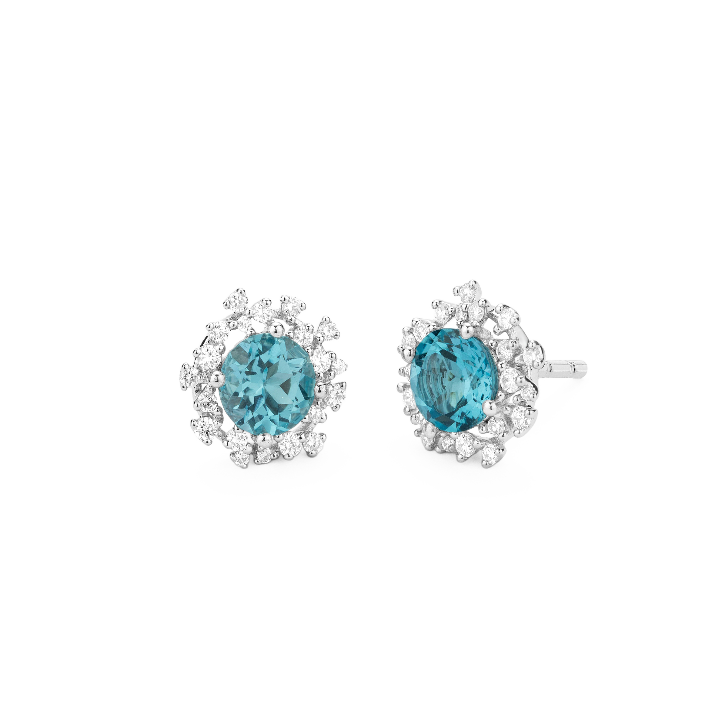 Boucles d´oreilles or blanc 18 carats, diamant couleur GH, pureté SI 0.32 ct, topace sky, 40 pierres, fermoir à pression