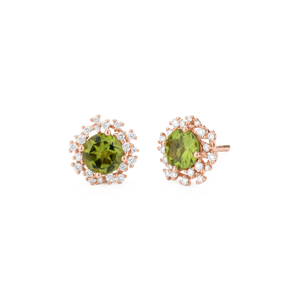 Boucles d´oreilles or jaune 18 carats, diamant couleur GH, pureté SI 0.31 ct, péridot, 40 pierres, fermoir à pression