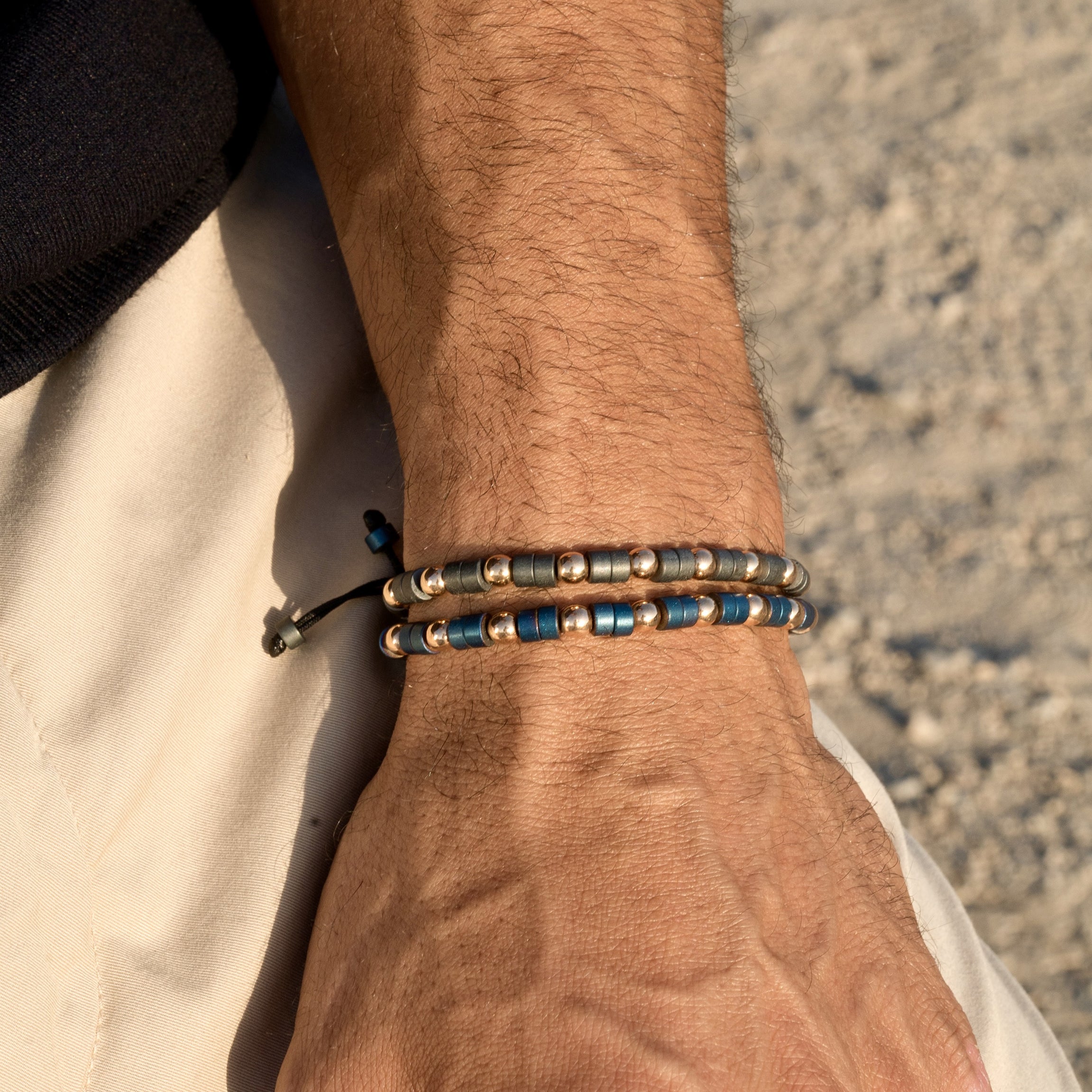 Bracelet or rose 18 carats, hématite, perle de 4 mm, Cordon nylon réglable de 15cm à 25cm