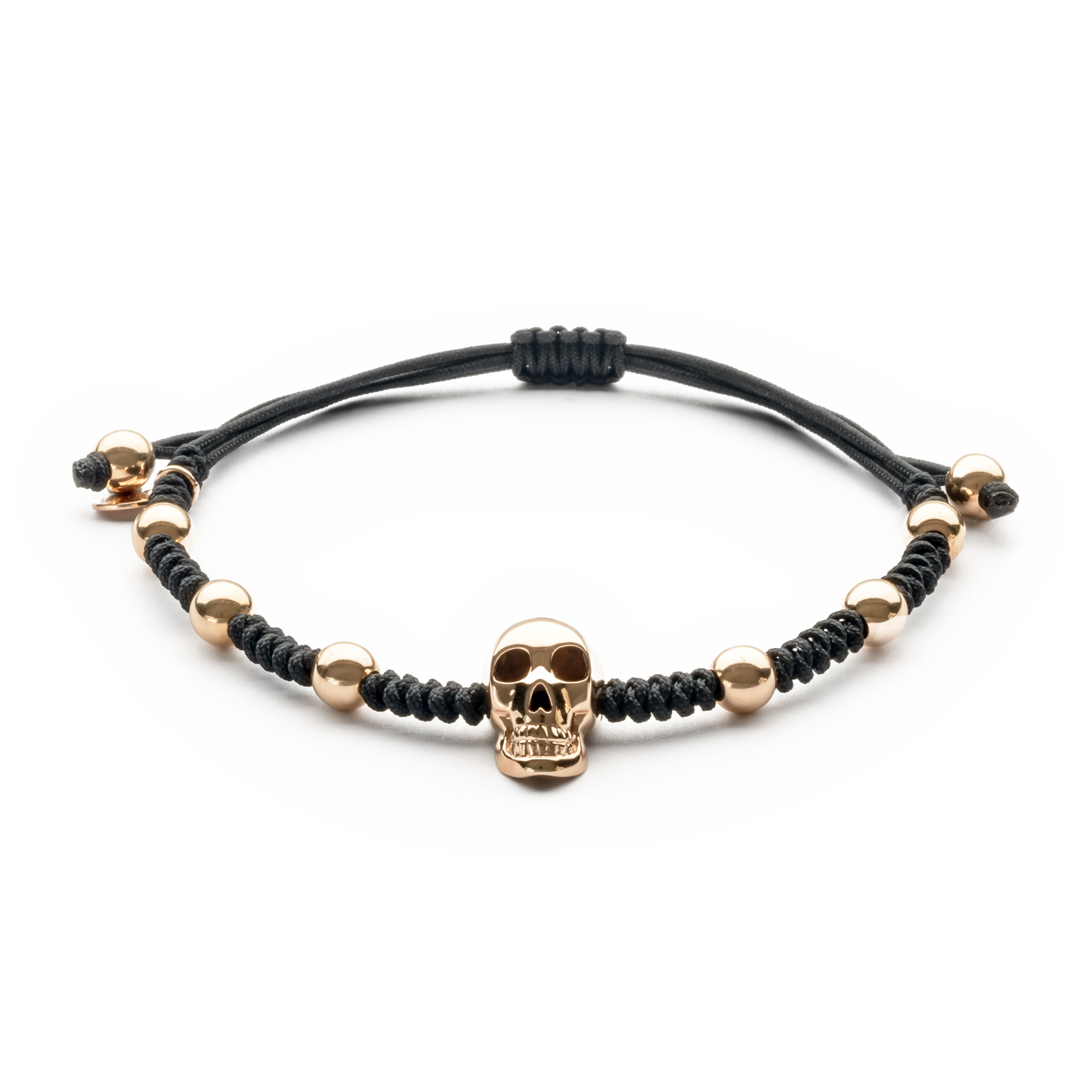 Bracelet or rose 18 carats, perle de 5 mm, Cordon nylon réglable de 15cm à 25cm