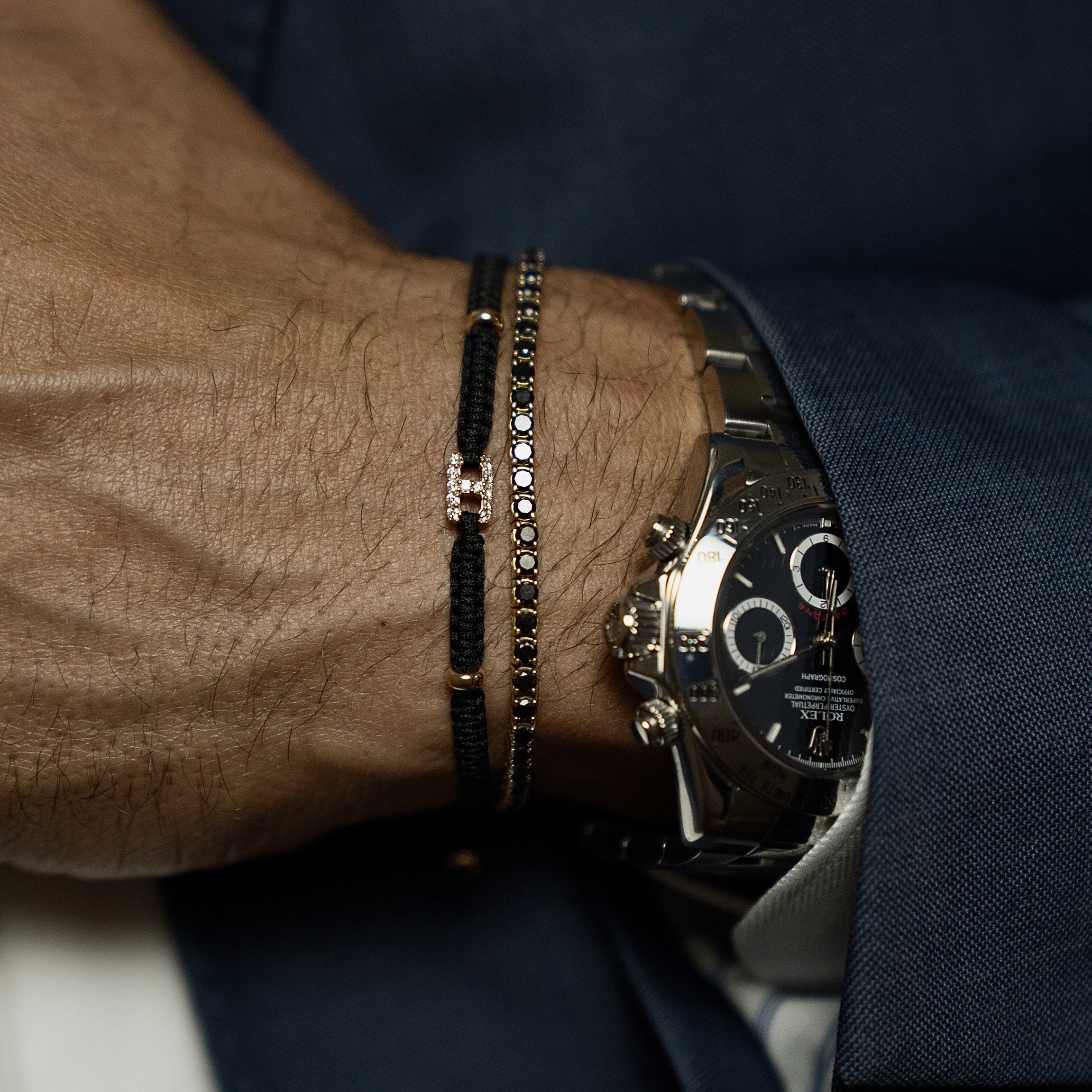 Bracelet or rose 18 carats, diamant noir 4.30 ct, 56 pierres, 17,5 cm, tailles personnalisées sur demande