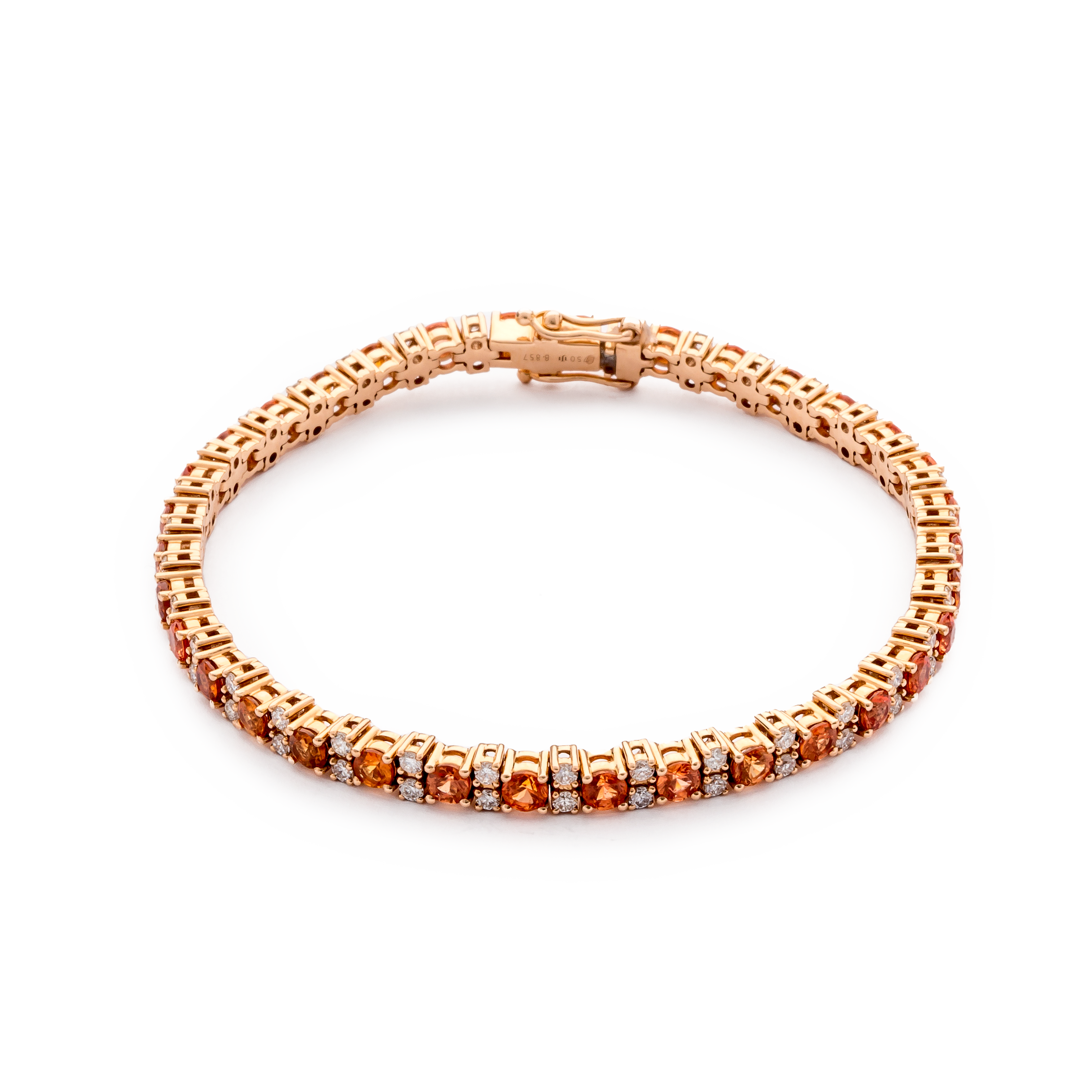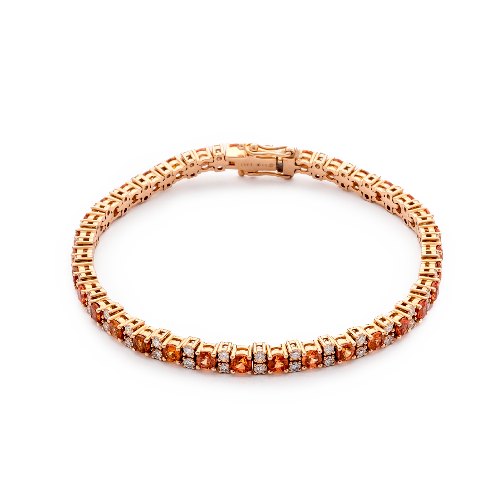 Bracelet or rose 18 carats, diamant couleur GH, pureté SI 1.44 ct, saphir, 102 pierres, 17,5 cm, tailles personnalisées sur demande
