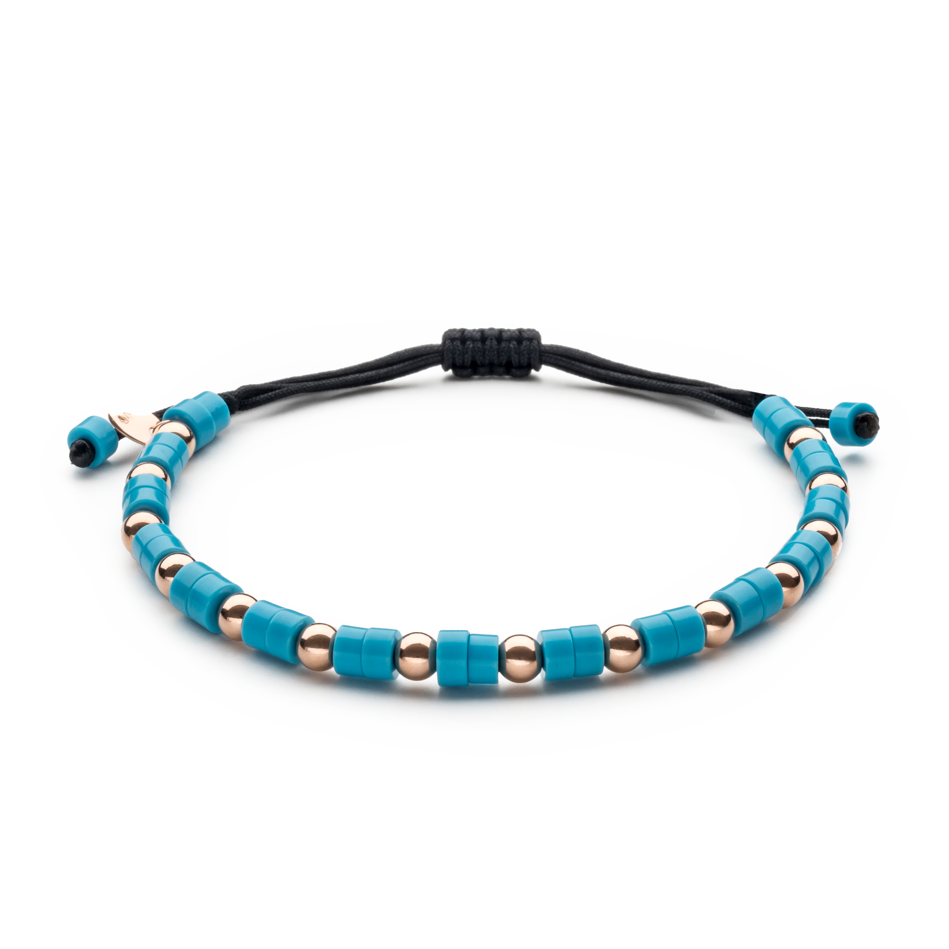 Bracelet or rose 18 carats, turquoise p, perle de 4 mm, Cordon nylon réglable de 15cm à 25cm