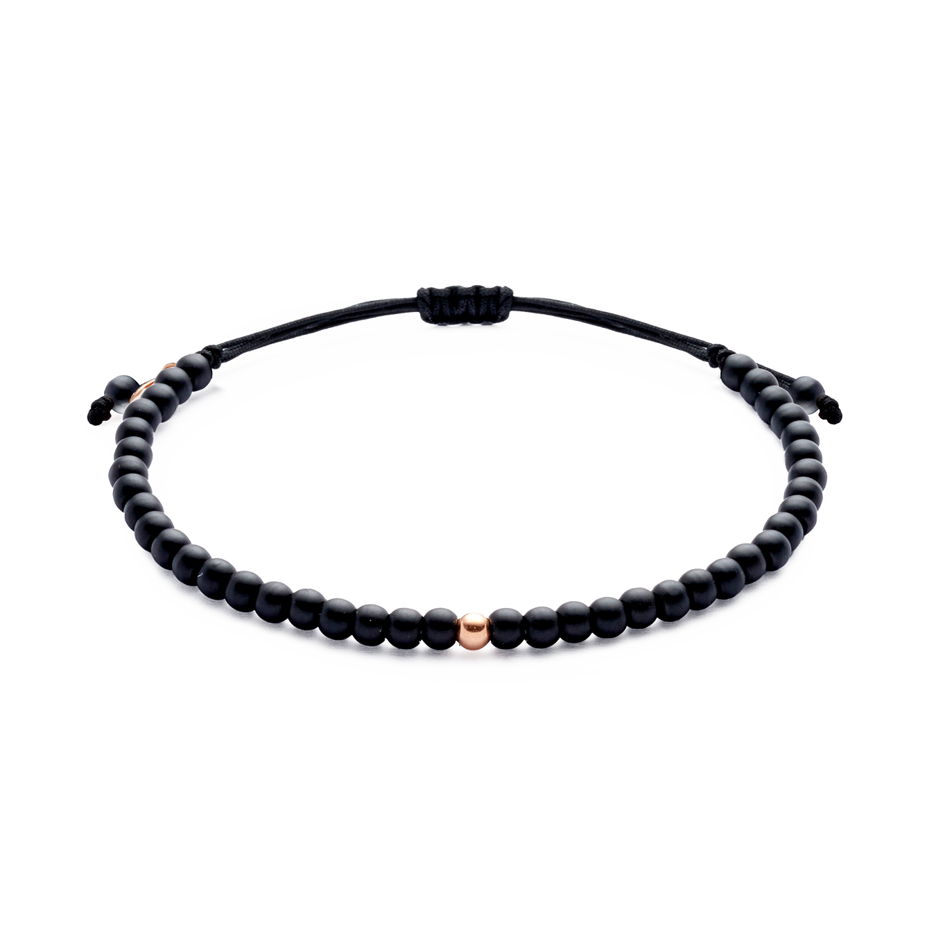 Bracelet or rose 18 carats, perle de 3 mm, Cordon nylon réglable de 15cm à 25cm