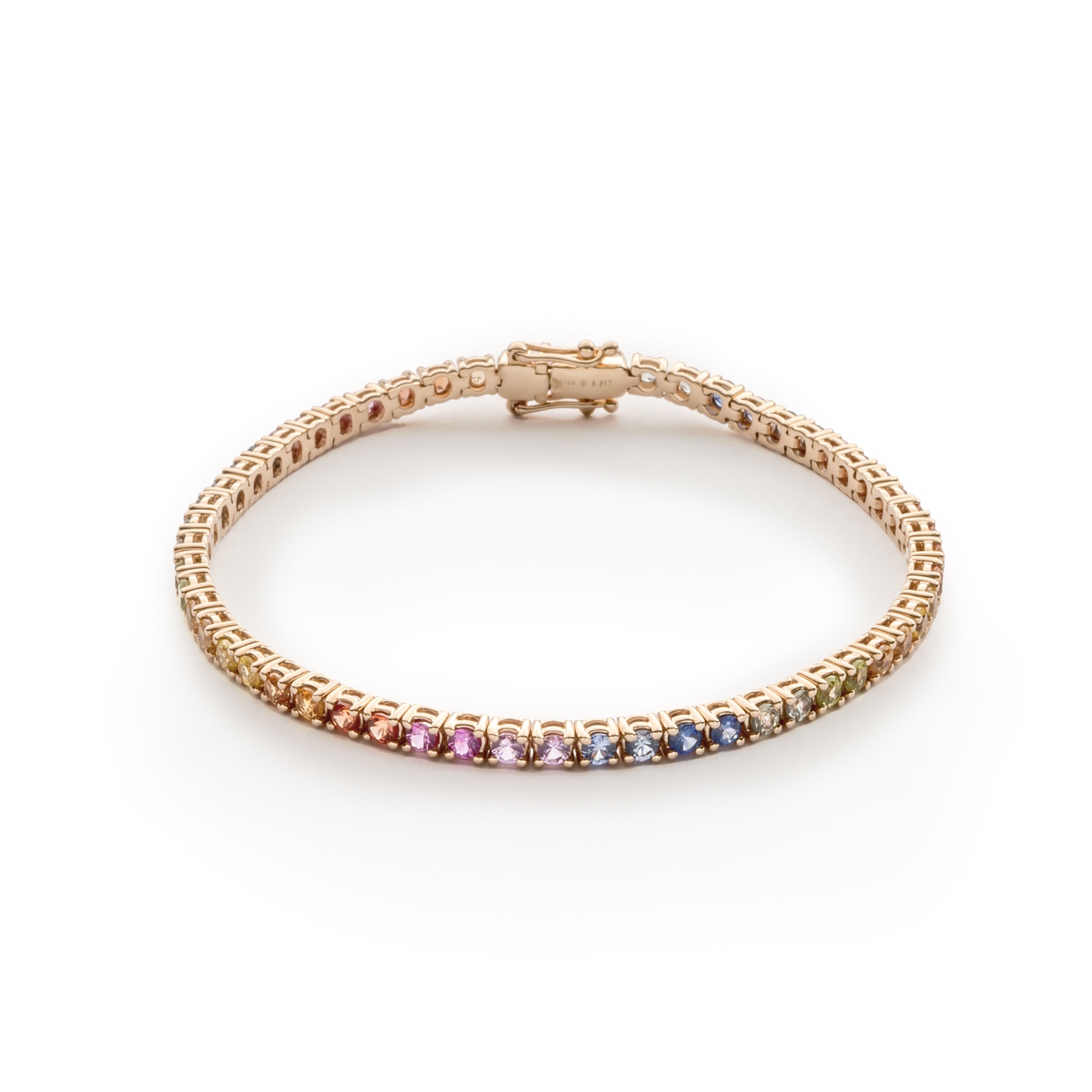 Bracelet or rose 18 carats, saphir et péridot, 17,5 cm, tailles personnalisées sur demande