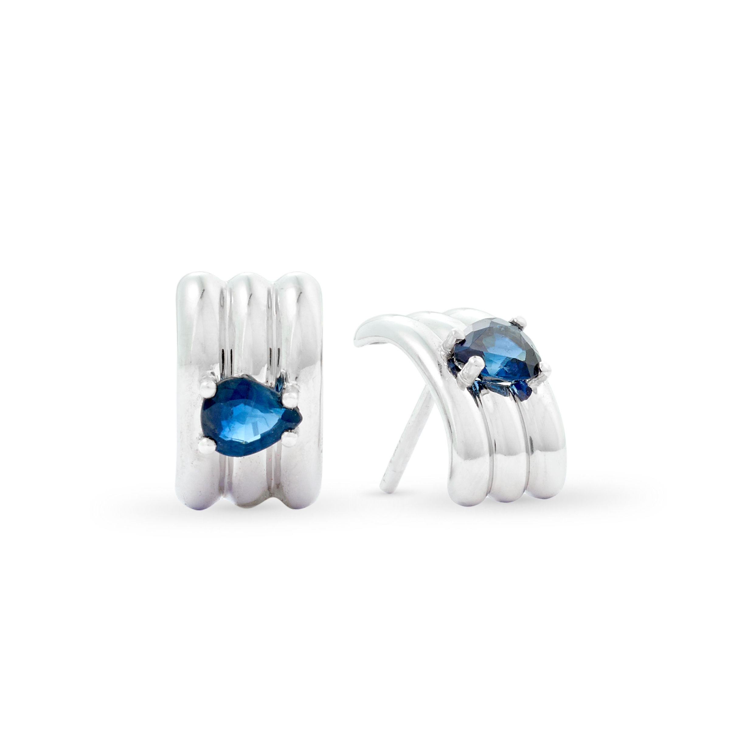 Boucles d´oreilles or blanc 18 carats, saphir, fermoir à pression