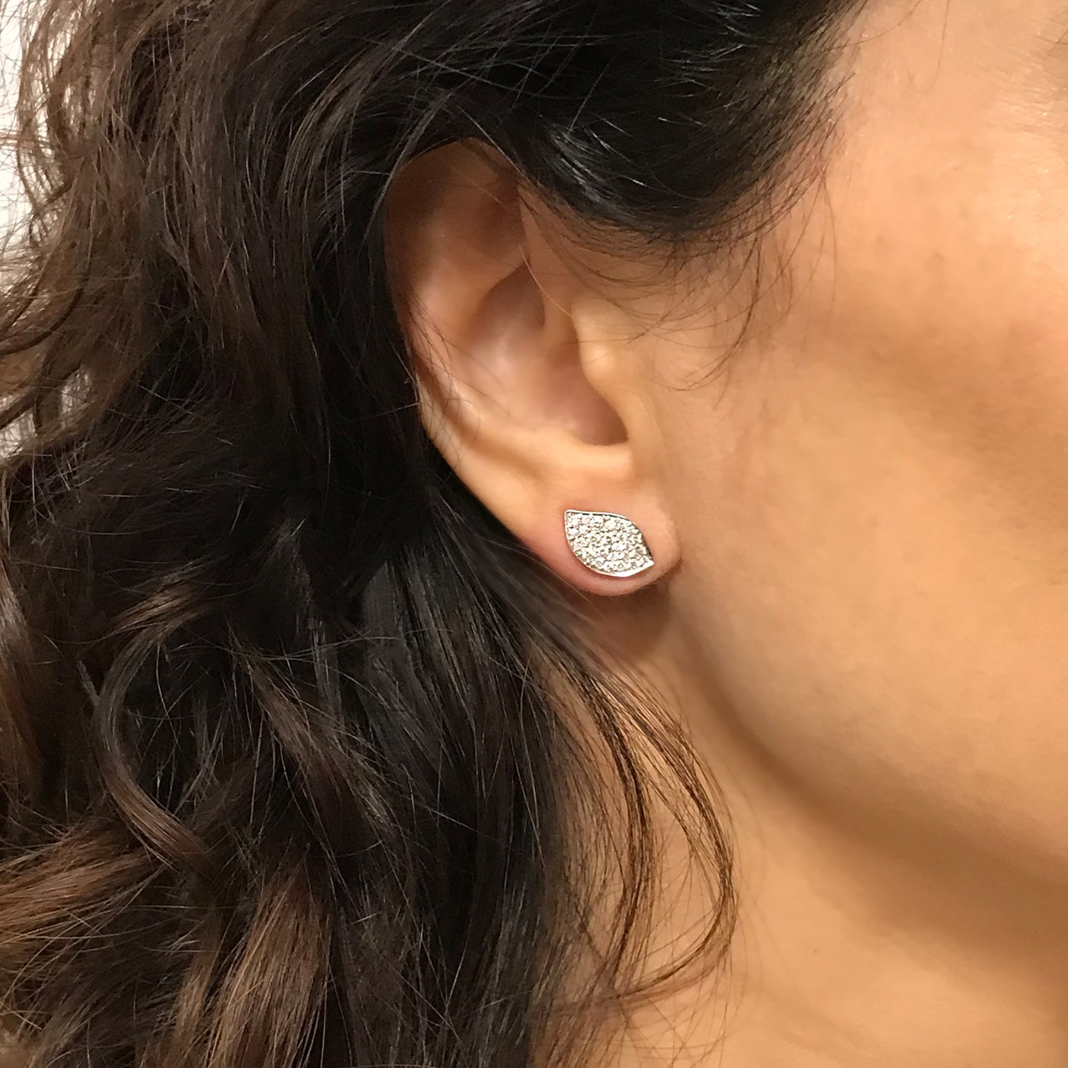 Boucles d´oreilles or blanc 18 carats, diamant couleur GH, pureté SI 0.61 ct, 50 pierres, fermoir à pression